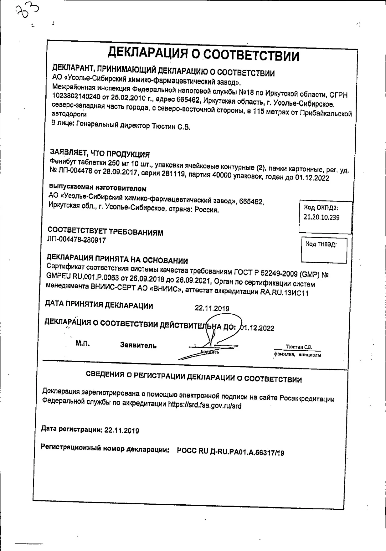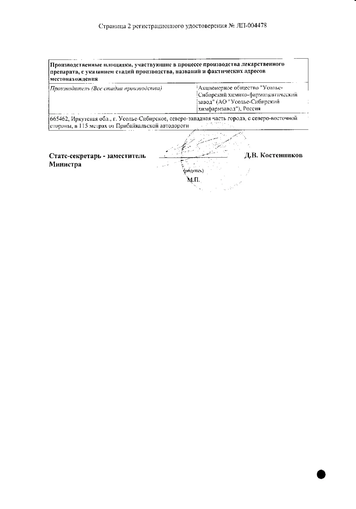 Производитель: Усолье-Сибирский ХФК ОАО