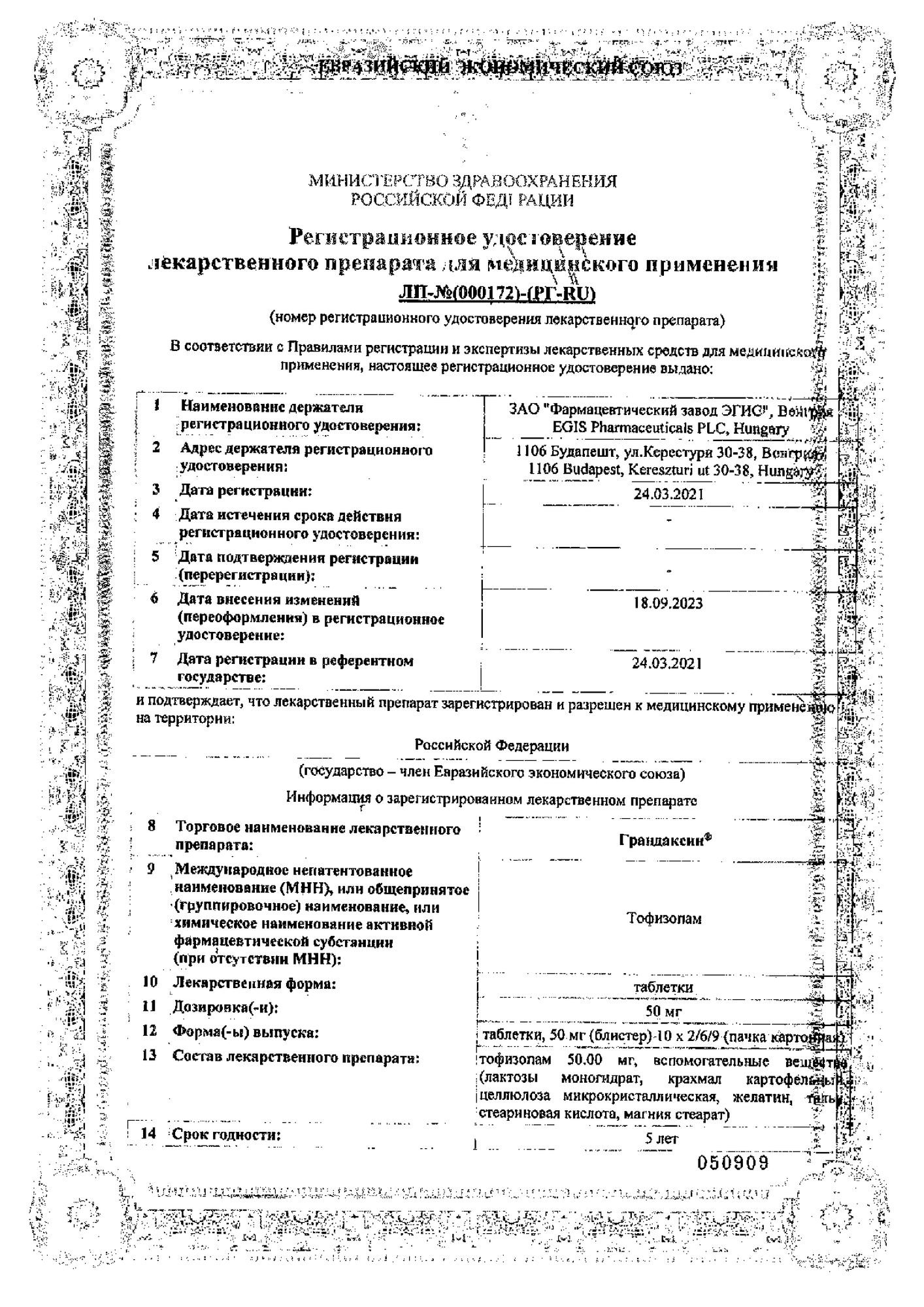 107(хран-3мес) Грандаксин таб 50мг №90