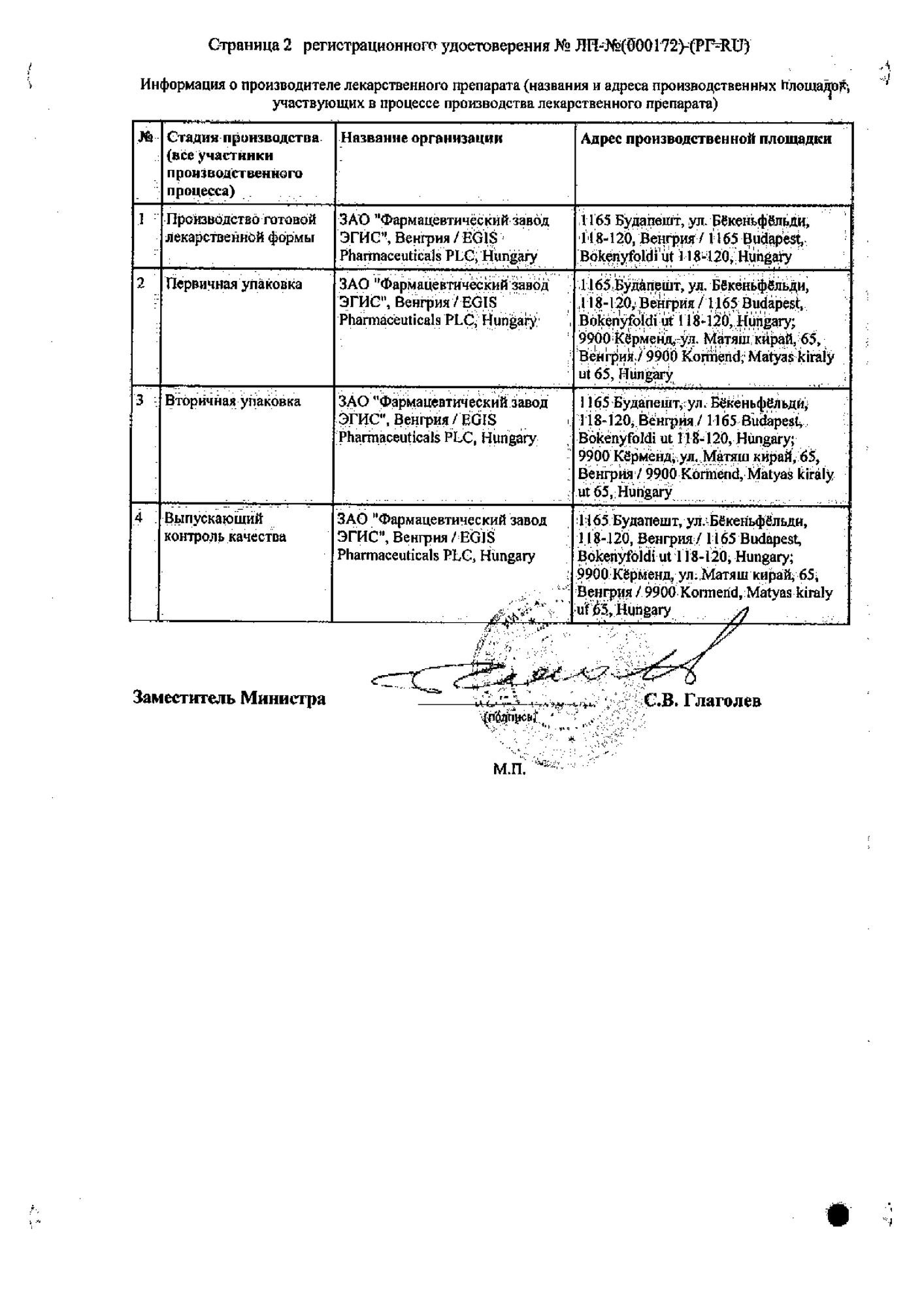 Производитель: ЭГИС Фармацевтический завод ЗАО