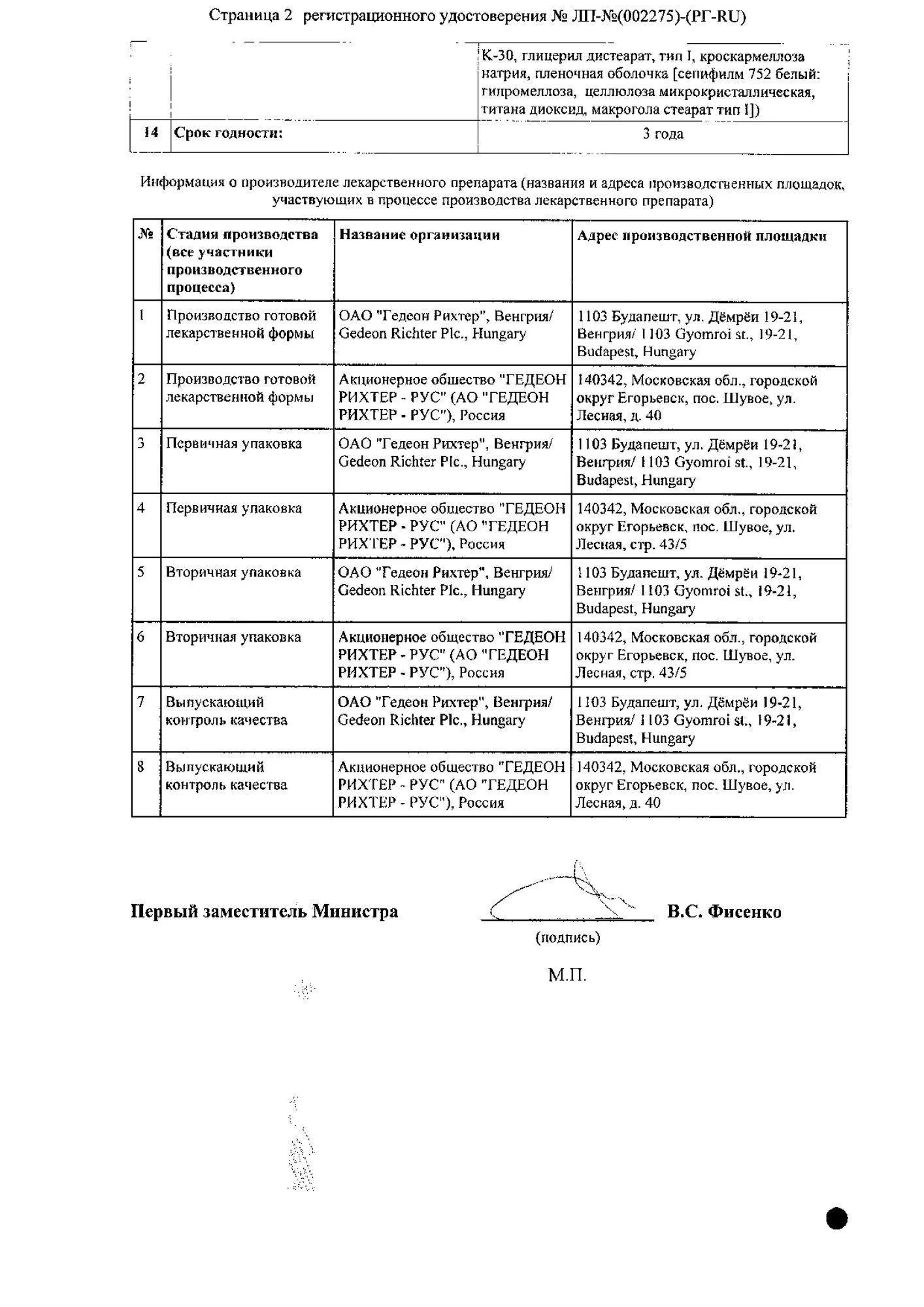 Производитель: Гедеон Рихтер ОАО/Гедеон Рихтер-РУС АО