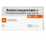 Амоксициллин+Клавулановая К-та таб ппо 500мг+125мг фл №14