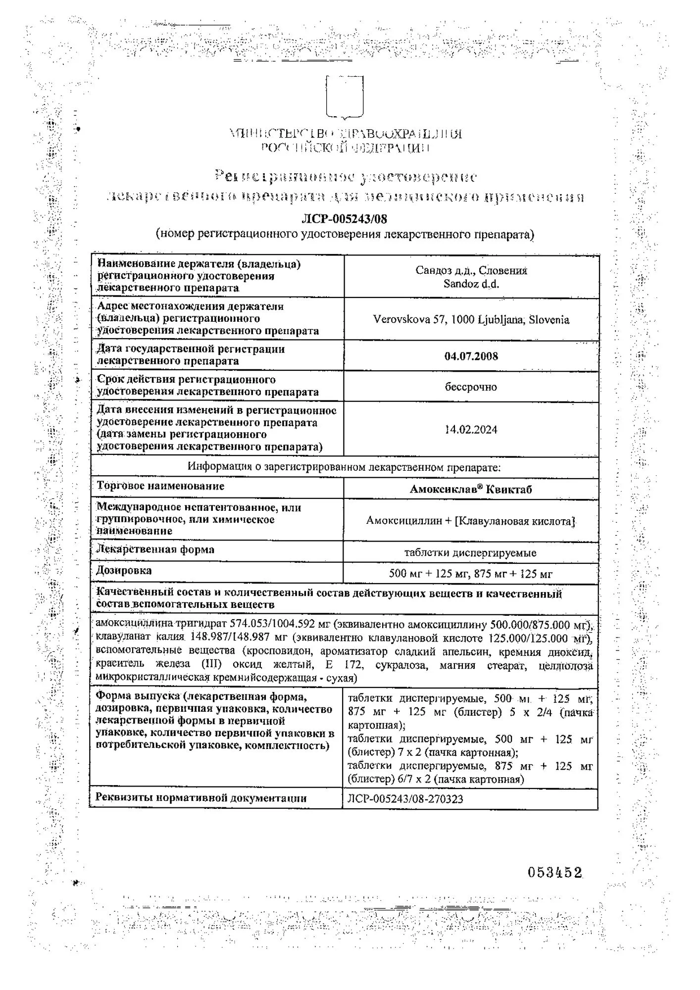 Перед применением Амоксиклав Квиктаб, таблетки дисперг 500мг+125мг №14 обязательно проконсультируйтесь с Вашим лечащим врачом.