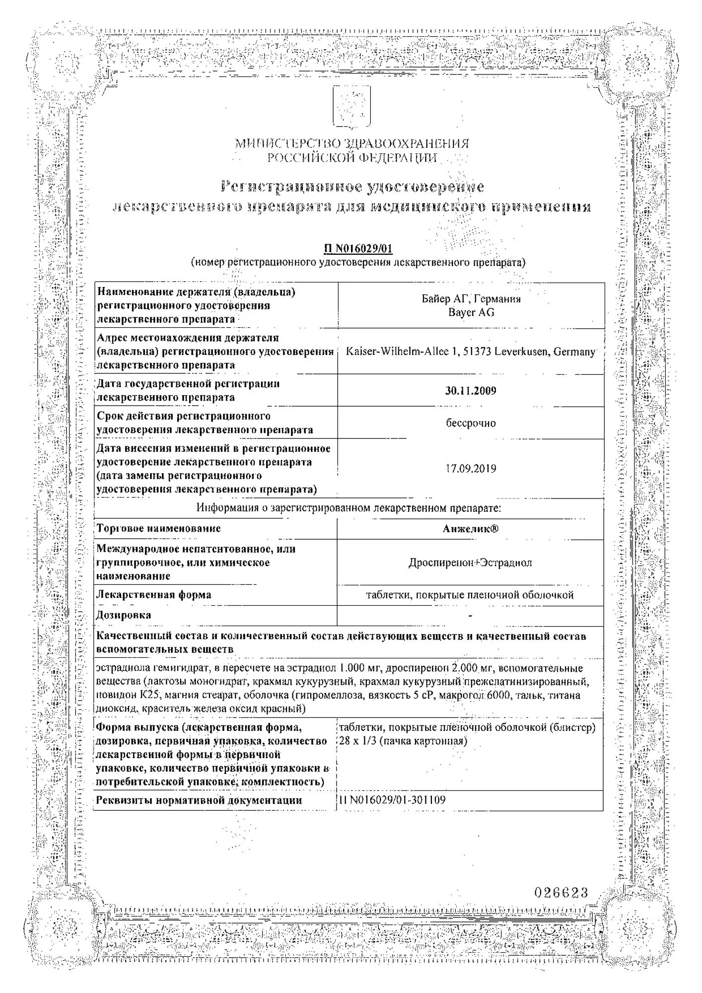 Анжелик, таблетки ппо №28