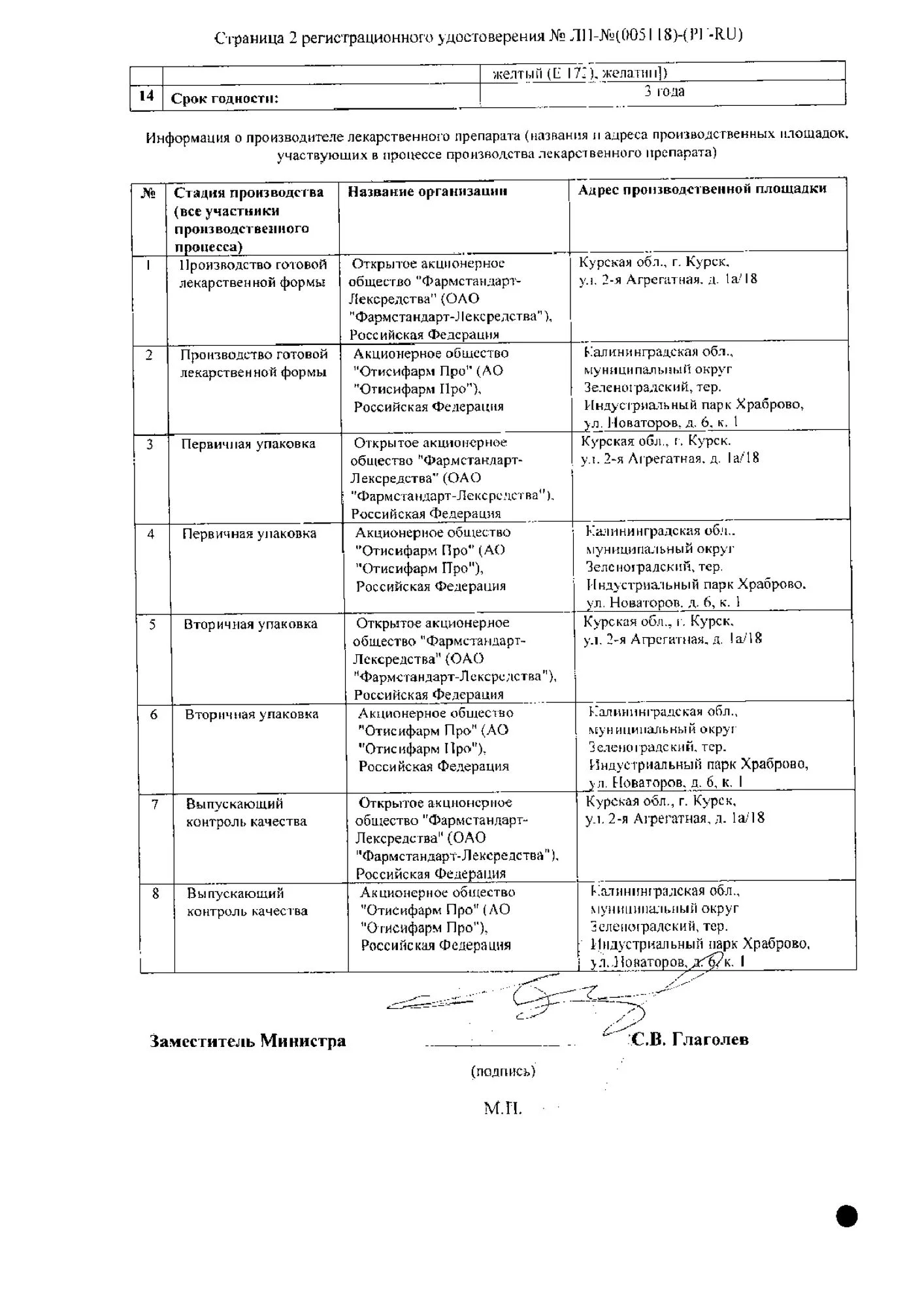 Производитель: Отисифарм Про АО/Фармстандарт-Лексредства ОАО