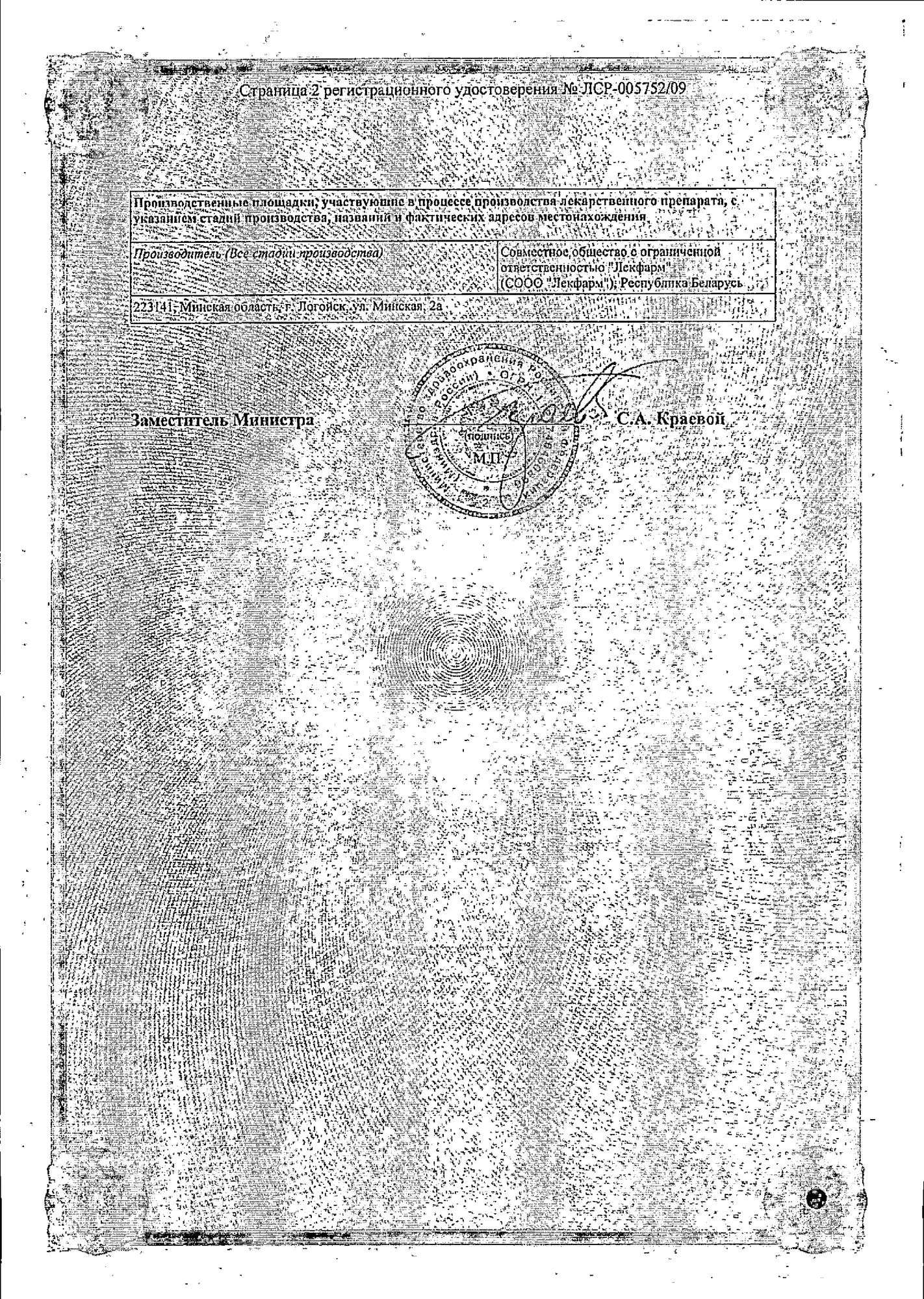 Вспомогательные вещества: сахар молочный (лактоза), целлюлоза микрокристаллическая, крахмал прежелатинизированный (крахмал - 1500), магния стеарат, кремния диоксид коллоидный (аэросил), повидон (поливинилпирролидон низкомолекулярный медицинский 12600 ± 2700).