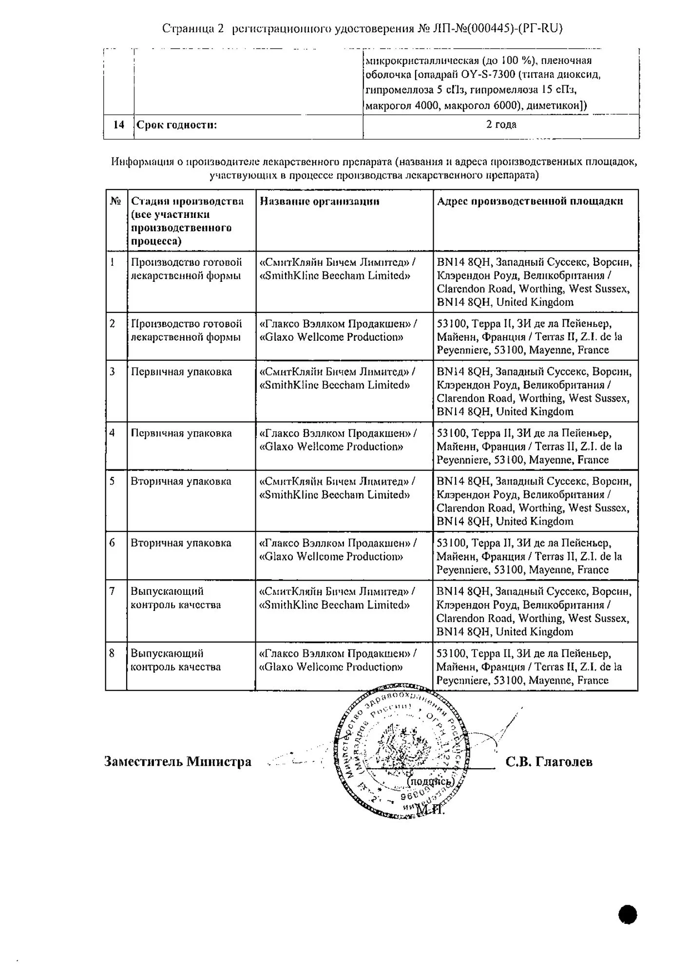 Вспомогательные вещества: магния стеарат - 14.5 мг, карбоксиметилкрахмал натрия - 29 мг, кремния диоксид коллоидный - 10 мг, целлюлоза микрокристаллическая - 243.16 мг (до 100%).