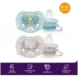 Авент пустышка силик ультра-софт с рисунком 6-18мес 2шт 223/01