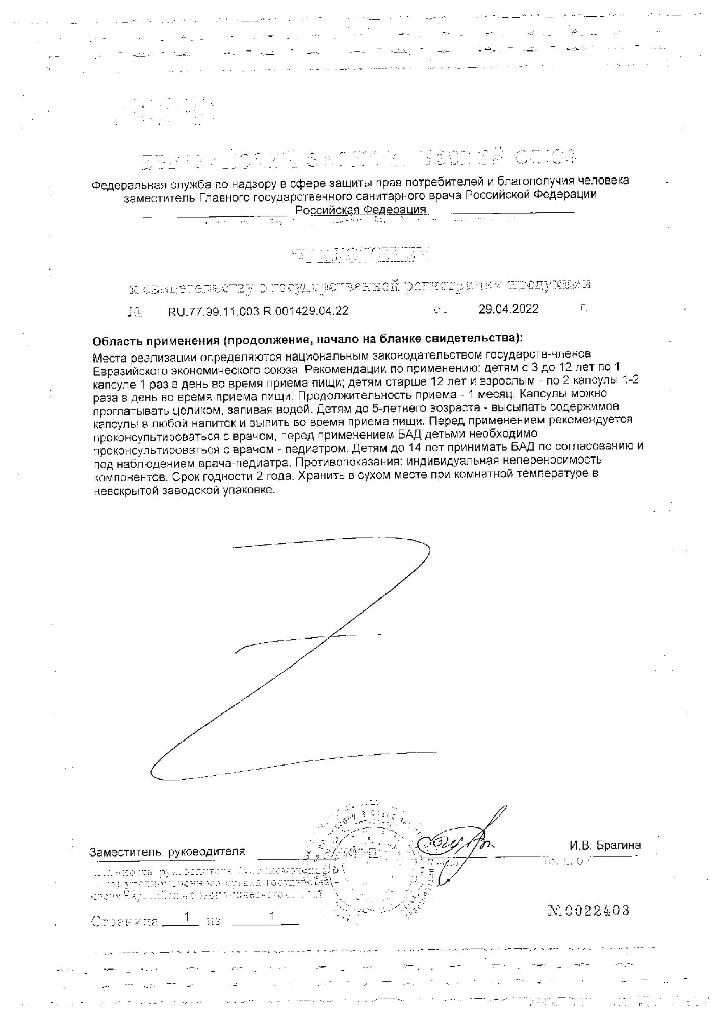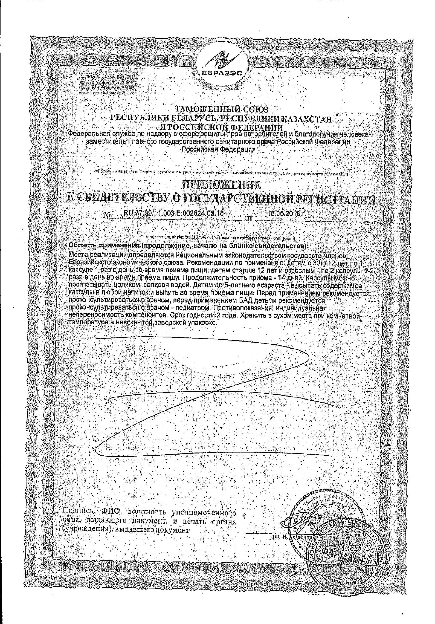 Детям с 3 до 12 лет по 1 капсуле 1 раз в день во время приема пищи.