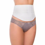 После родов пояс необходимо перевернуть «задом наперед», чтобы широкая его часть утягивала и фиксировала живот, а узкая застегивалась на спине.
