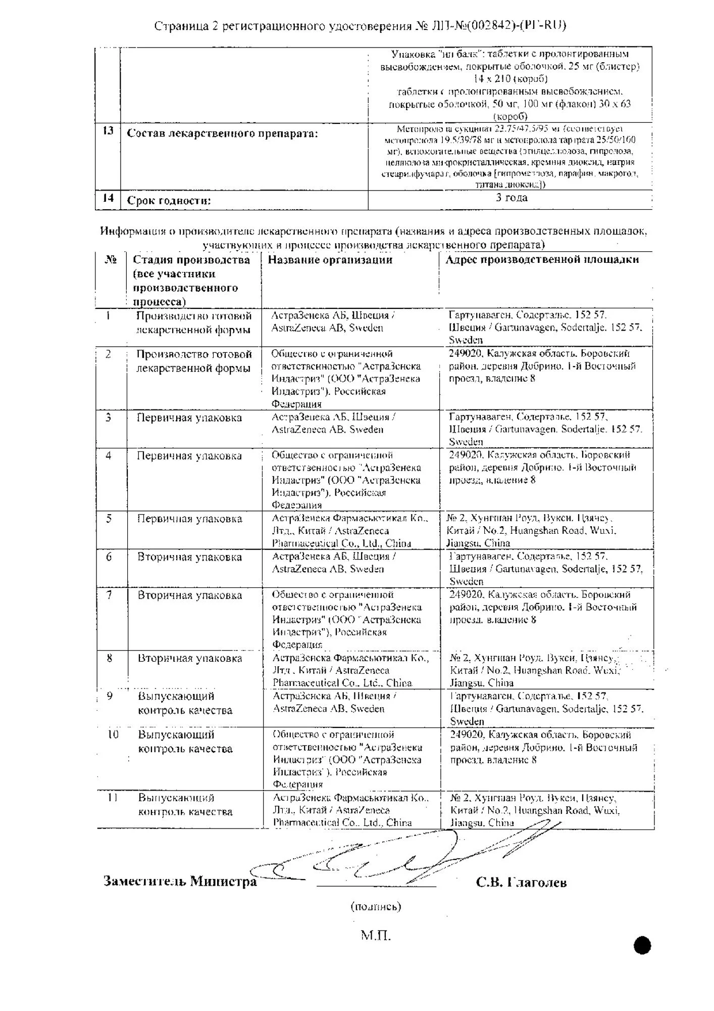 Вспомогательные вещества: этилцеллюлоза - 46 мг, гипролоза - 13 мг, гипромеллоза - 9.8 мг, целлюлоза микрокристаллическая - 180 мг, парафин - 200 мкг, макрогол - 2.4 мг, кремния диоксид - 24 мг, натрия стеарилфумарат - 500 мкг, титана диоксид - 2.4 мг.
