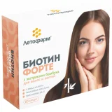 «Биотин Форте с экстрактом бамбука» - комплекс с добавлением биотина и натуральным кремнием и других веществ, которые поддерживают здоровье нервной системы, нормализует обмен веществ. Комплекс создан для укрепления и оздоровления волос, ногтей и выравнивания кожи. В составе препарата - «умный» комплекс микроэлементов и витаминов способствует усвоению серы, продлевает молодость организма и укрепляет иммунитет. Укрепление волос и ногтей, улучшение состояния кожи, содержит натуральный кремний