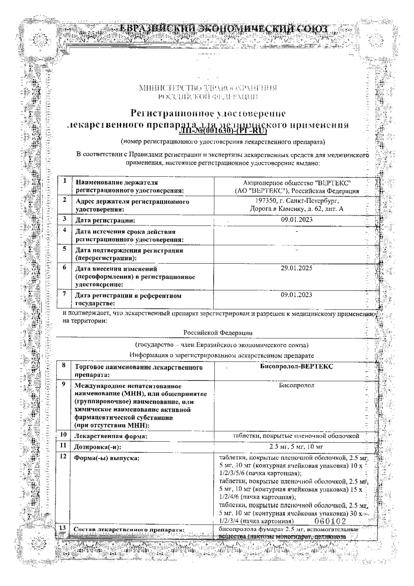 Перед применением Бисопролол Вертекс, таблетки ппо 5мг №60 обязательно проконсультируйтесь с Вашим лечащим врачом.