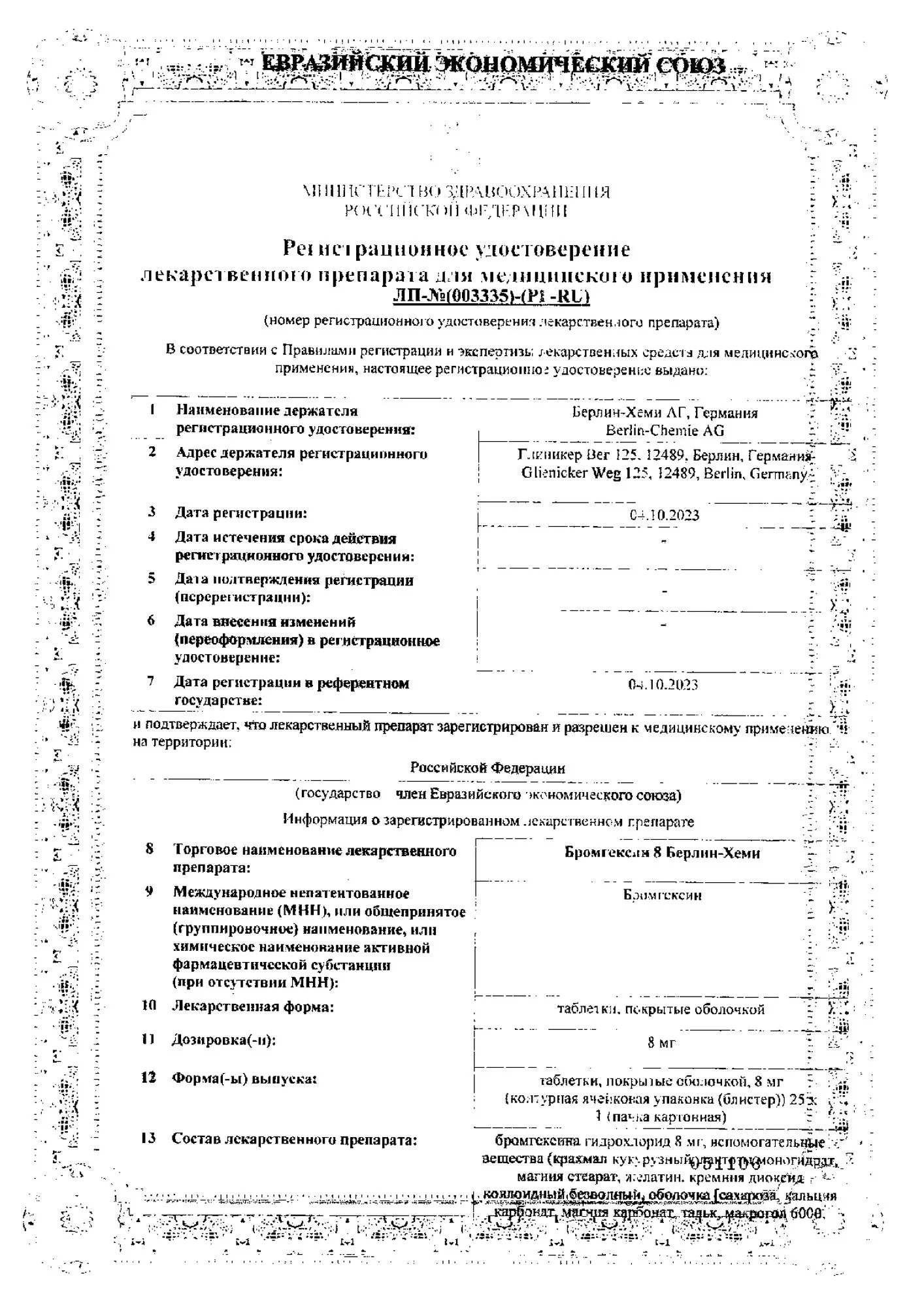 Бромгексин 8-Берлин-Хеми, таблетки по 8мг №25