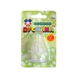 Соска Бусинка изготовлена из высококачественного медицинского силикона. Она бесцветная, у нее нет ни постороннего запаха, ни привкуса, так что она не будет изменять вкуса детского питания и не вызовет аллергической реакции. Соски, сделанные из силикона, достаточно прочные, так что даже малыш, у которого уже прорезались зубки, с трудом их порвет.