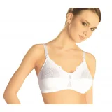 Бюстгальтер приспособлен к цикличному увеличению груди во время кормления, благодаря растяжимости верхней детали чашечки, декорированной эластичным кружевом.