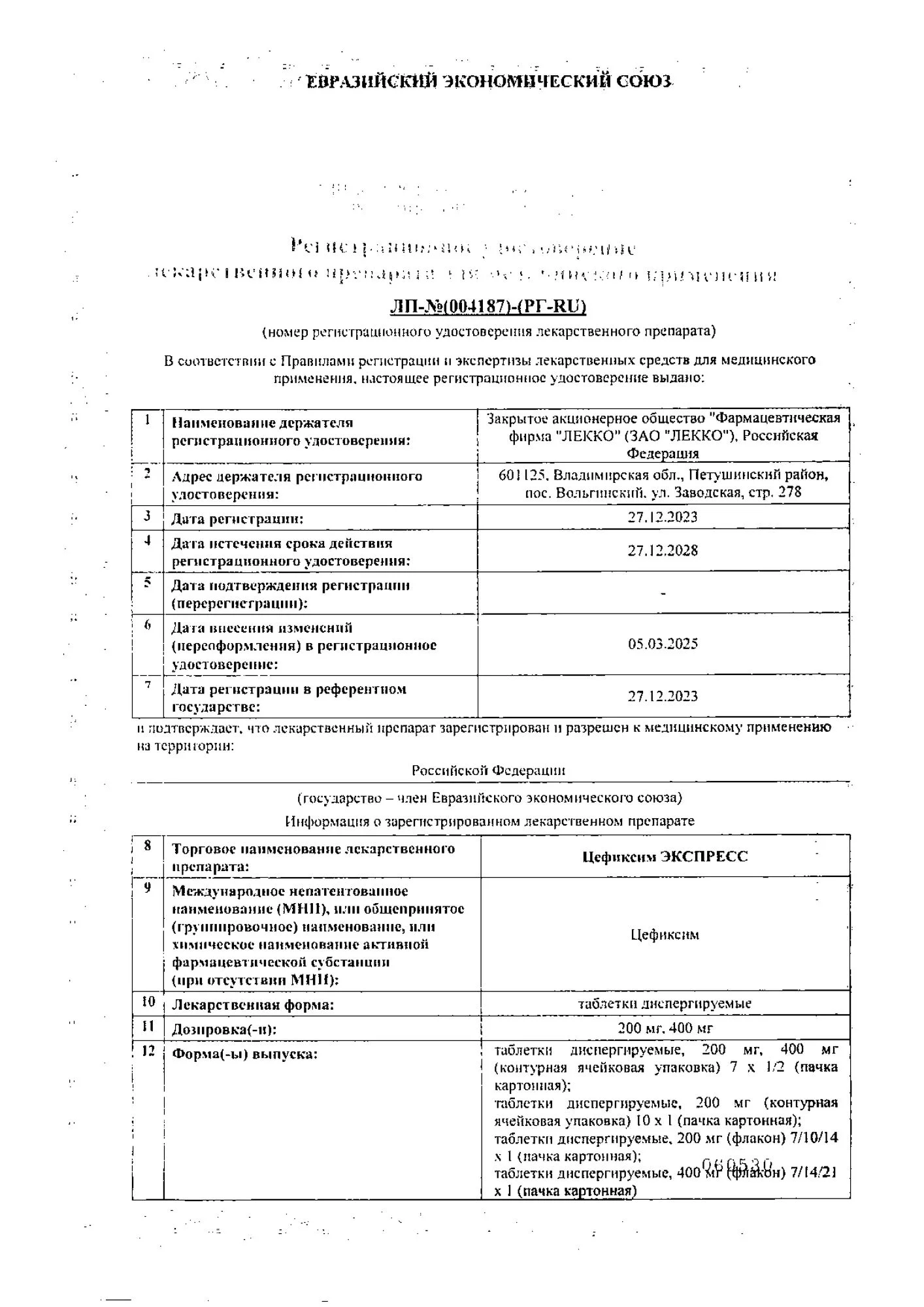 Цефиксим Экспресс, таблетки дисперг 400мг №7