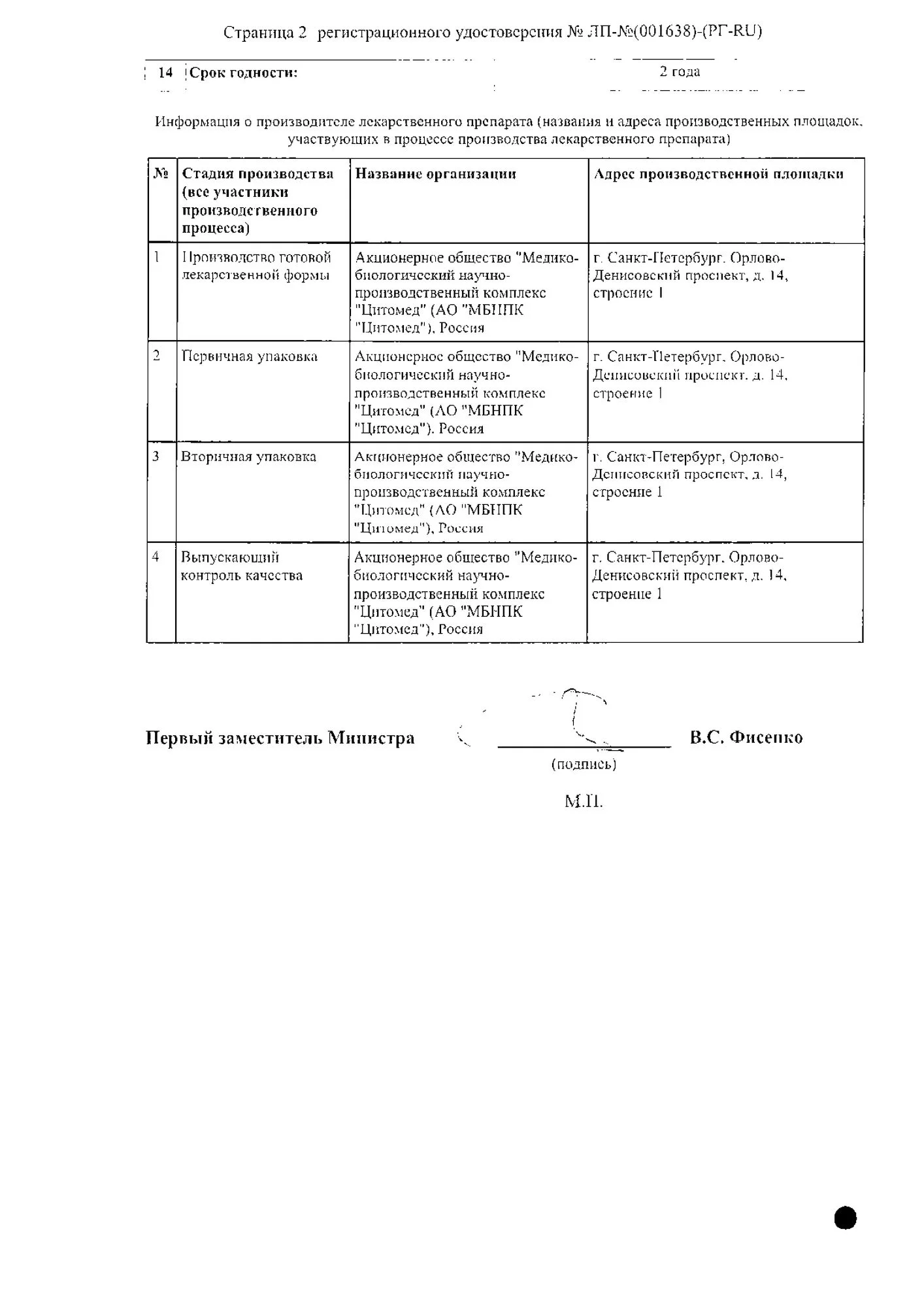 тимоген (альфа-глутамил-триптофан в форме натриевой соли)150 мкг