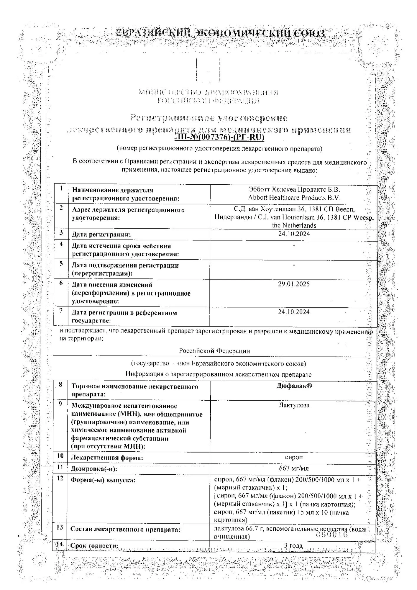 рег. №: ЛП-000542 от 12.05.11 - Действующее