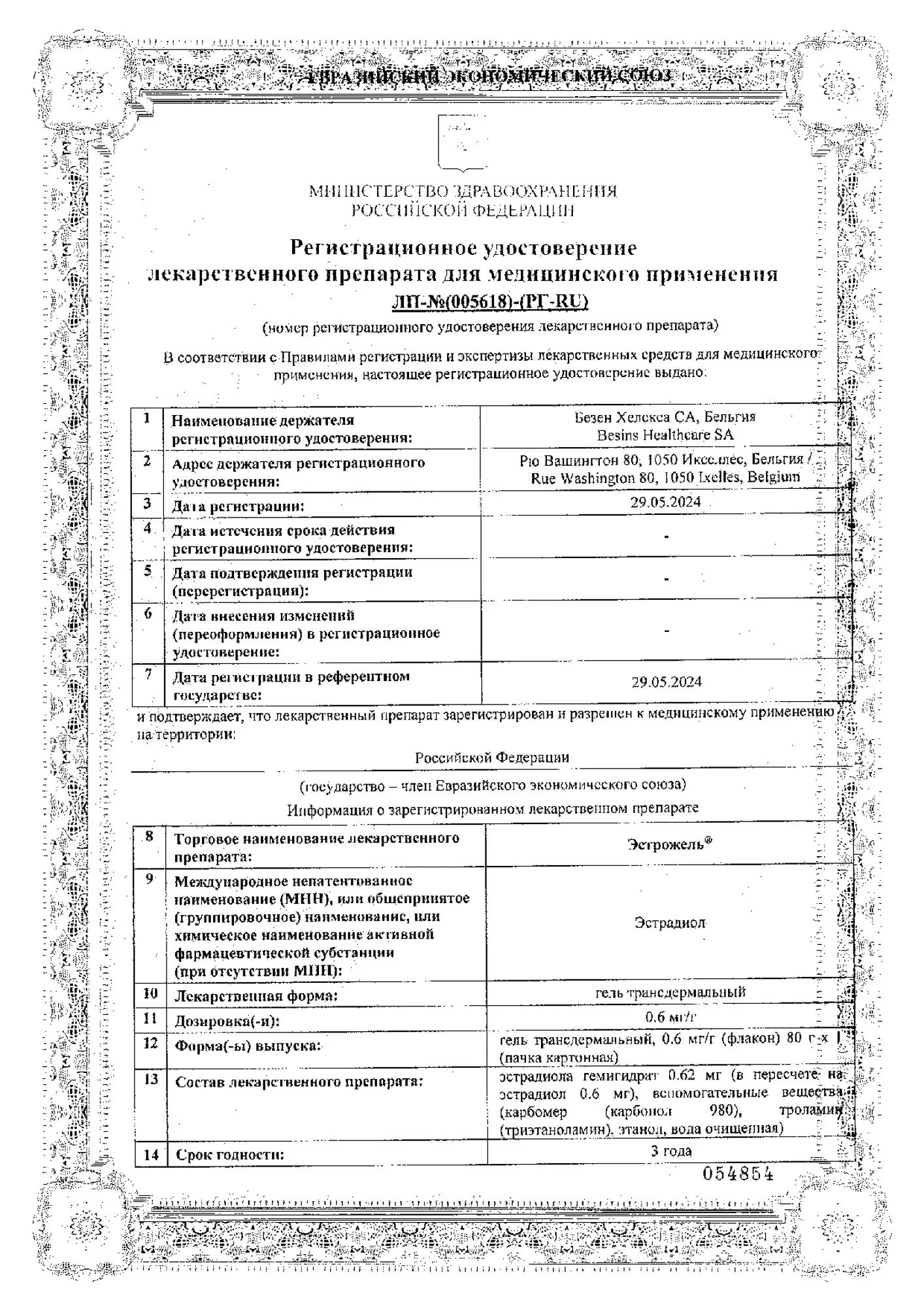 Действующее вещество препарата Эстрожель - 17β-эстрадиол химически и биологически идентичен эндогенному человеческому эстрадиолу.