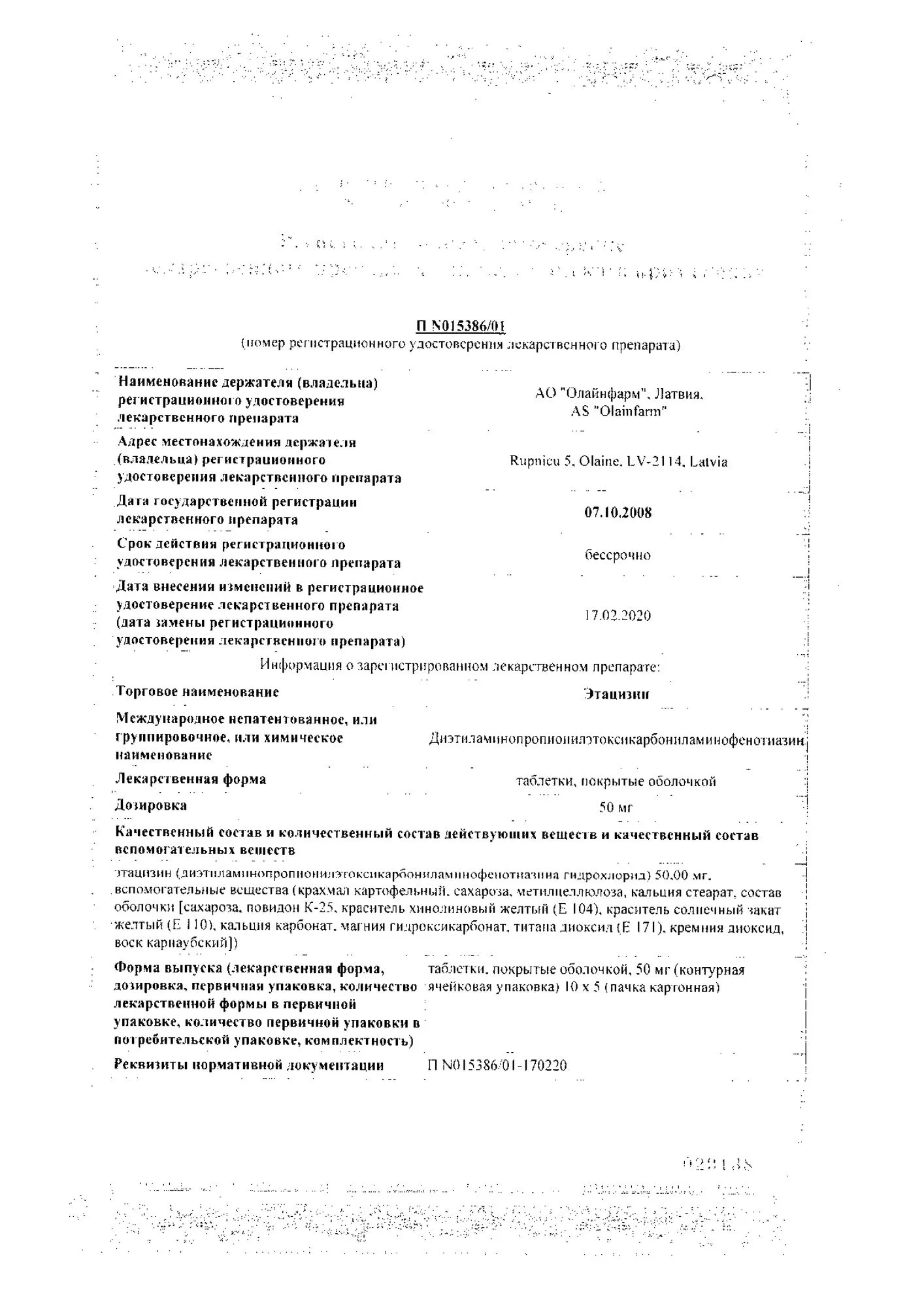 Действующее вещество: Этацизин