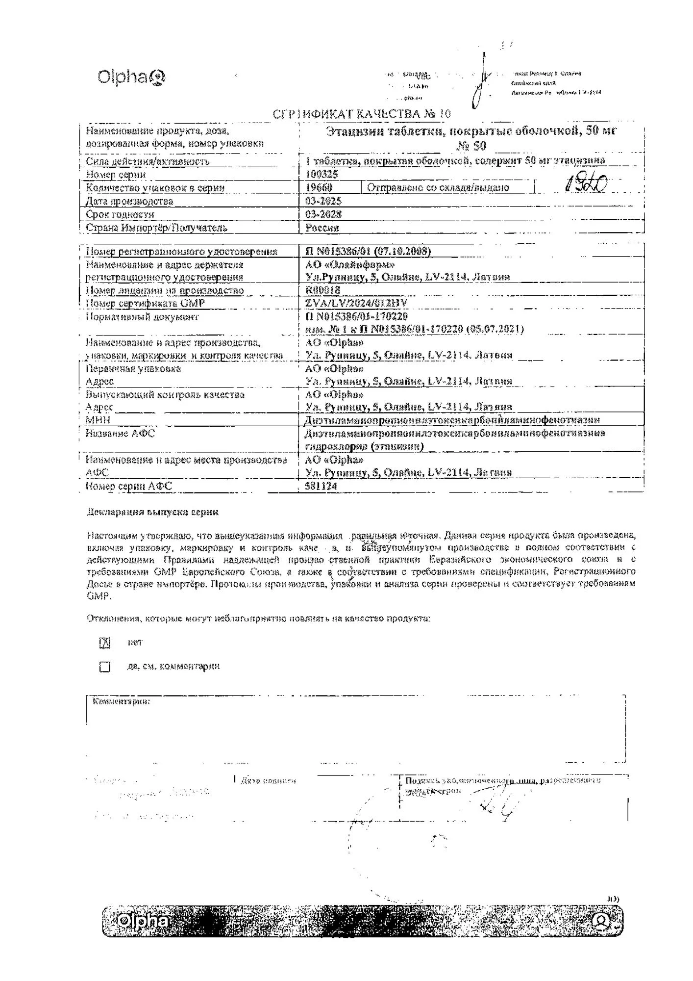 Производитель: Олайнфарм АО