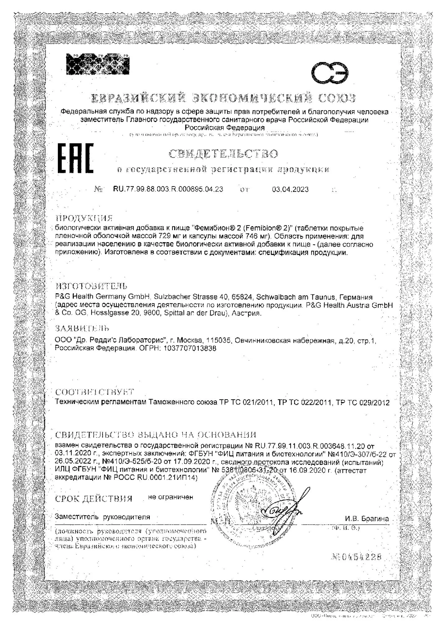 Фемибион® 2 предназначен для применения в качестве пищевой добавки, но не как замена разнообразного сбалансированного питания и здорового образа жизни. Не следует превышать рекомендуемую суточную норму потребления (1 таблетка + 1 капсула в сутки).