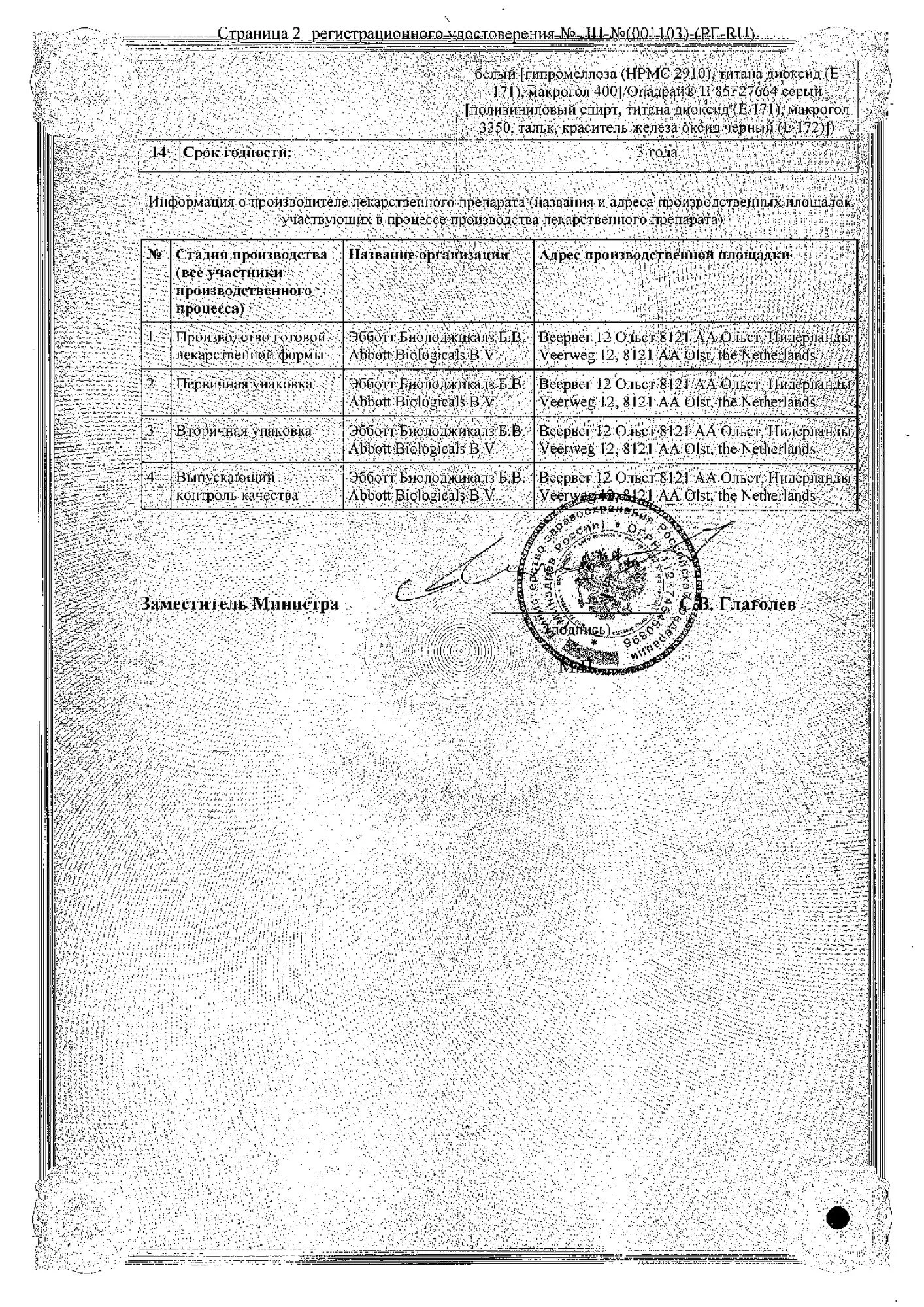 Производитель: Эбботт Биолоджикалз Б.В.