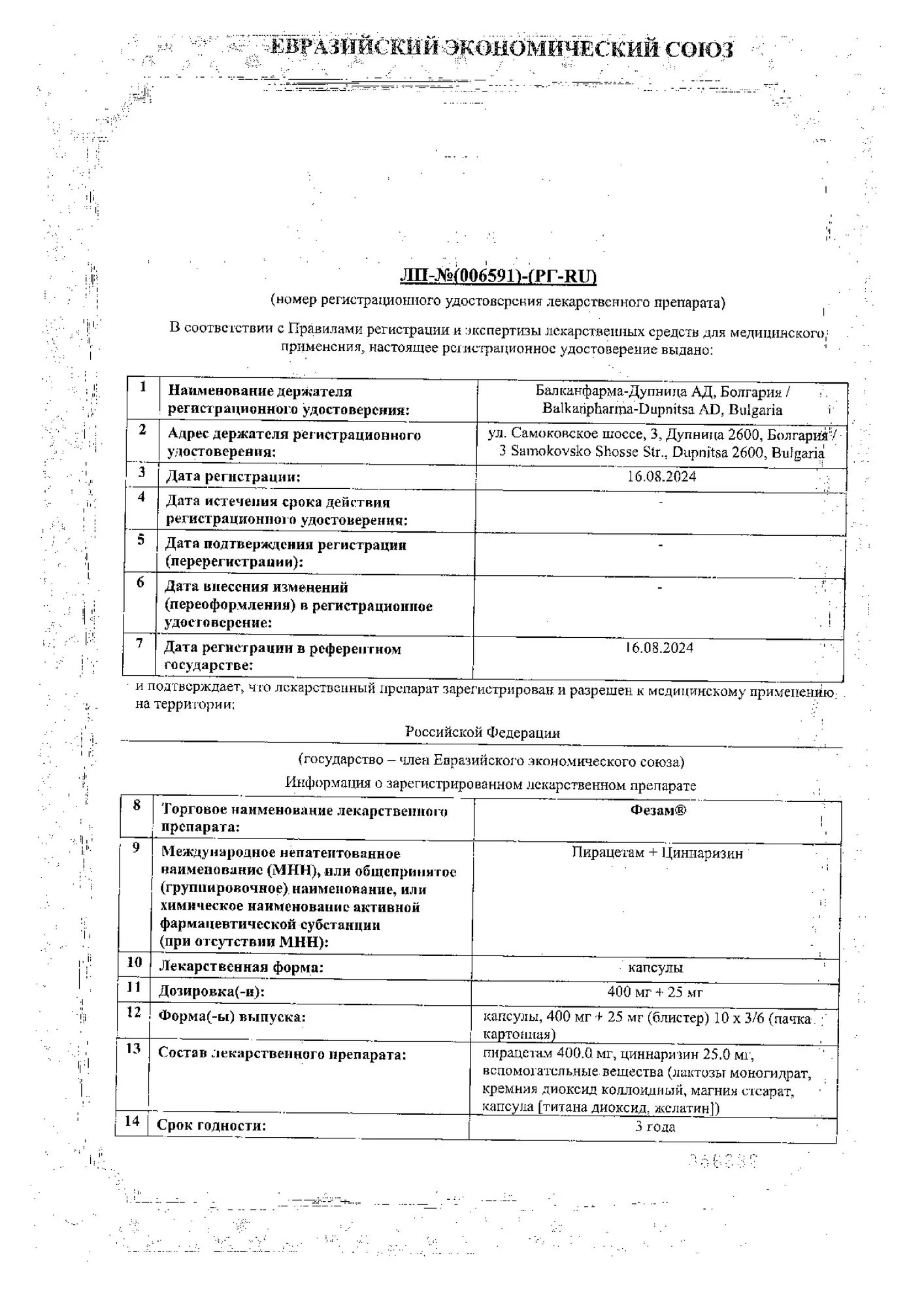 Перед применением Фезам, капсулы №60 обязательно проконсультируйтесь с Вашим лечащим врачом.