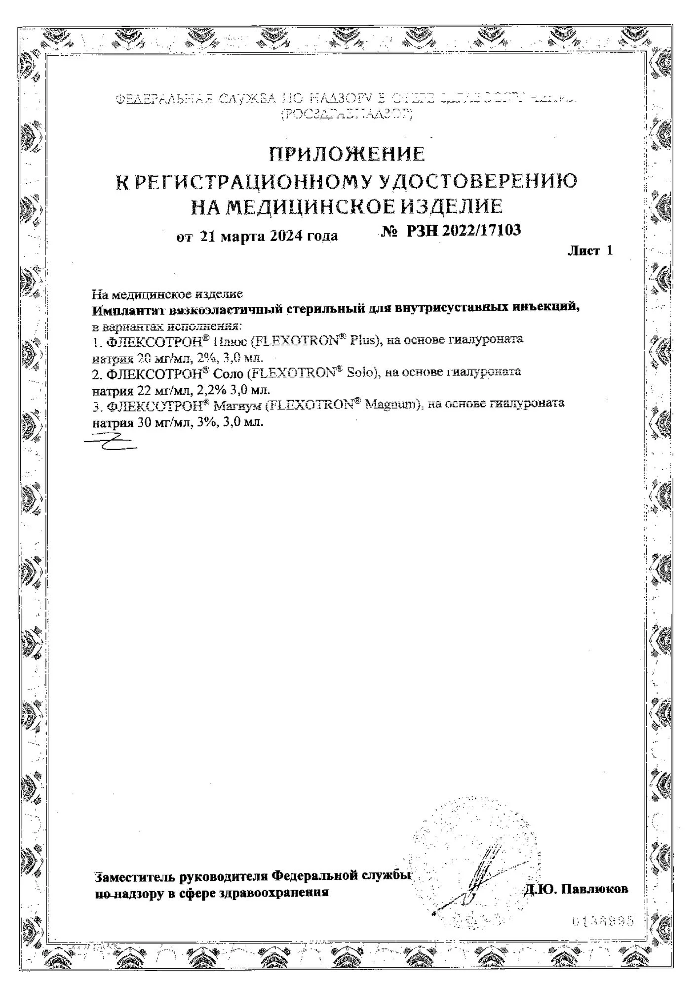 Флексотрон Соло имплантат д/в/суставн инъекц 2,2% 22мг/мл шпр 3мл