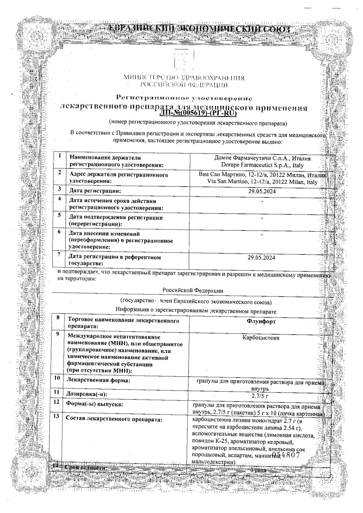 | карбоцистеина лизиновой соли моногидрат | 2.7 г |