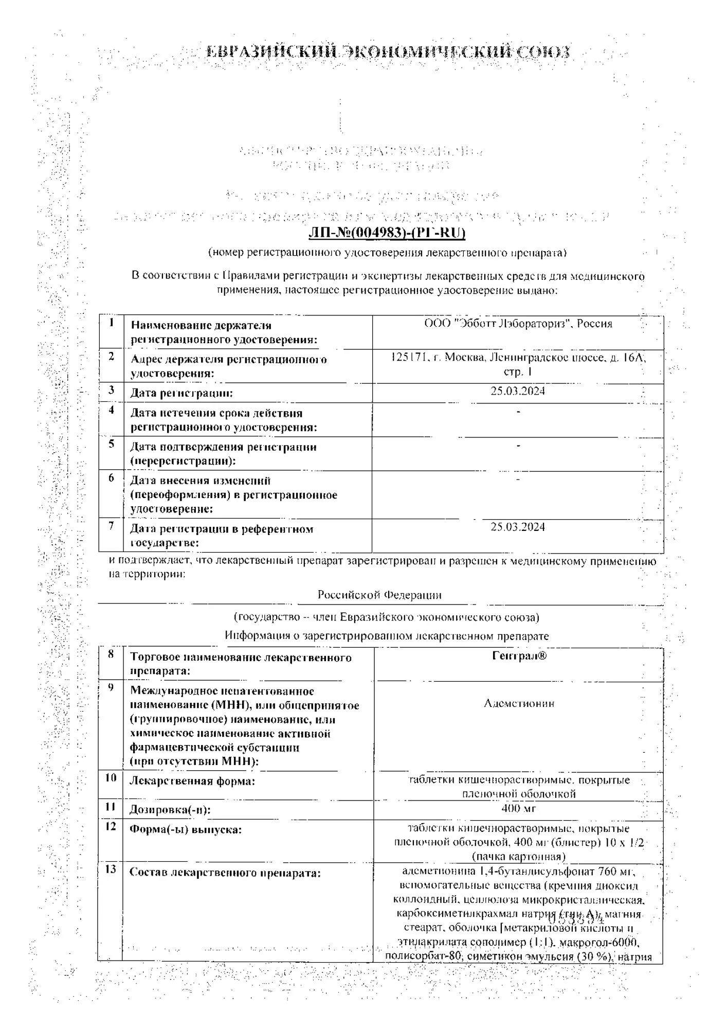 Действующее вещество: адеметионина 1,4-бутандисульфонат 760 мг (эквивалентно 400 мг иона адеметионина).
