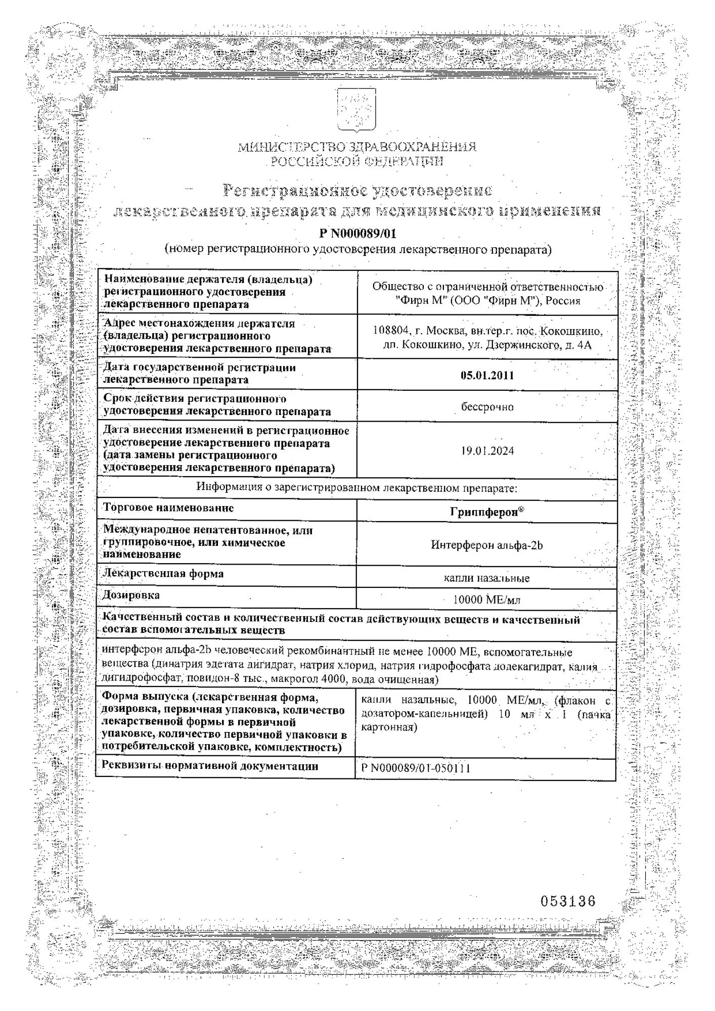 Гриппферон, капли наз 10000МЕ/мл фл-кап 10мл №1