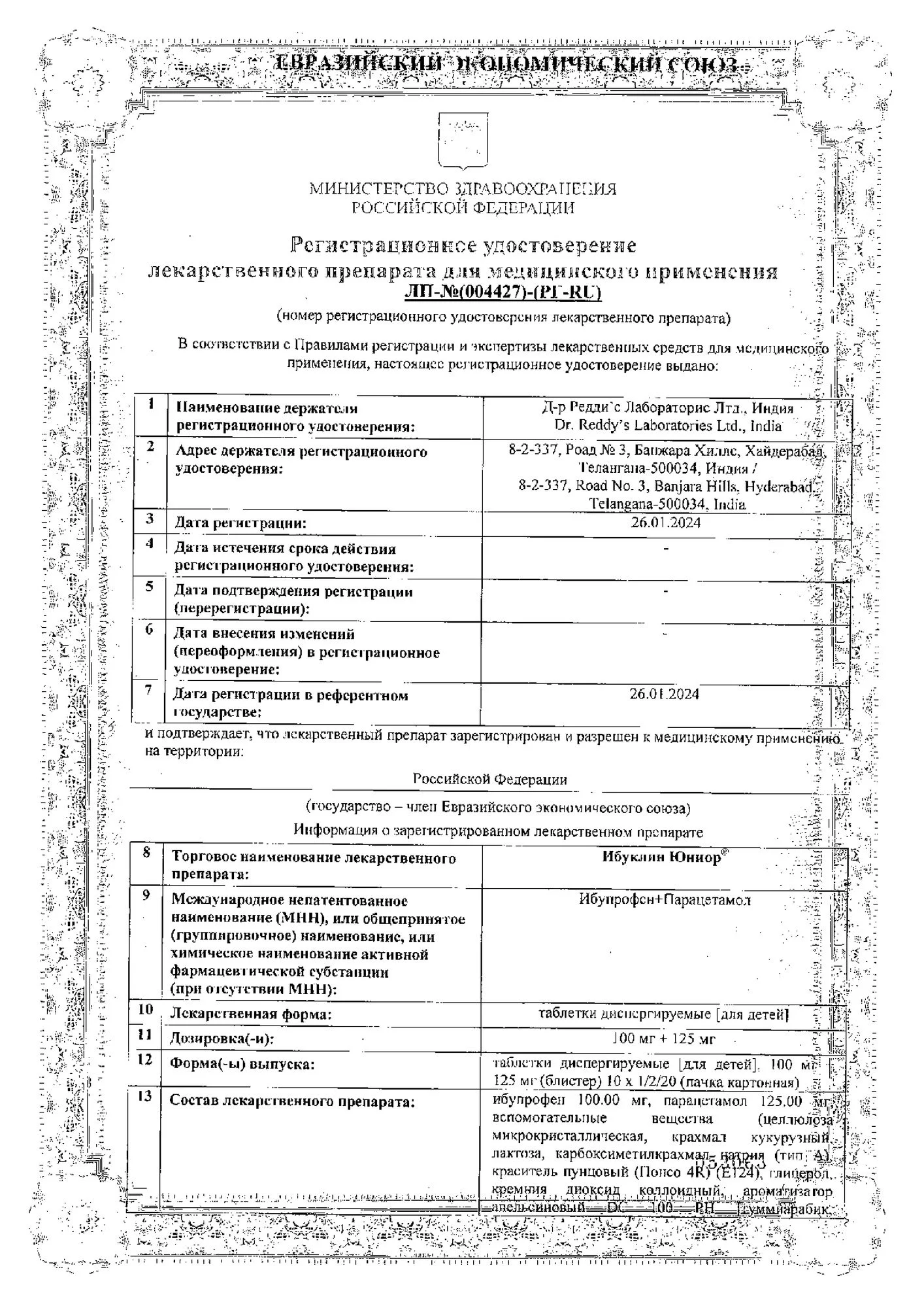 активные вещества: ибупрофен 100 мг, парацетамол 125 мг