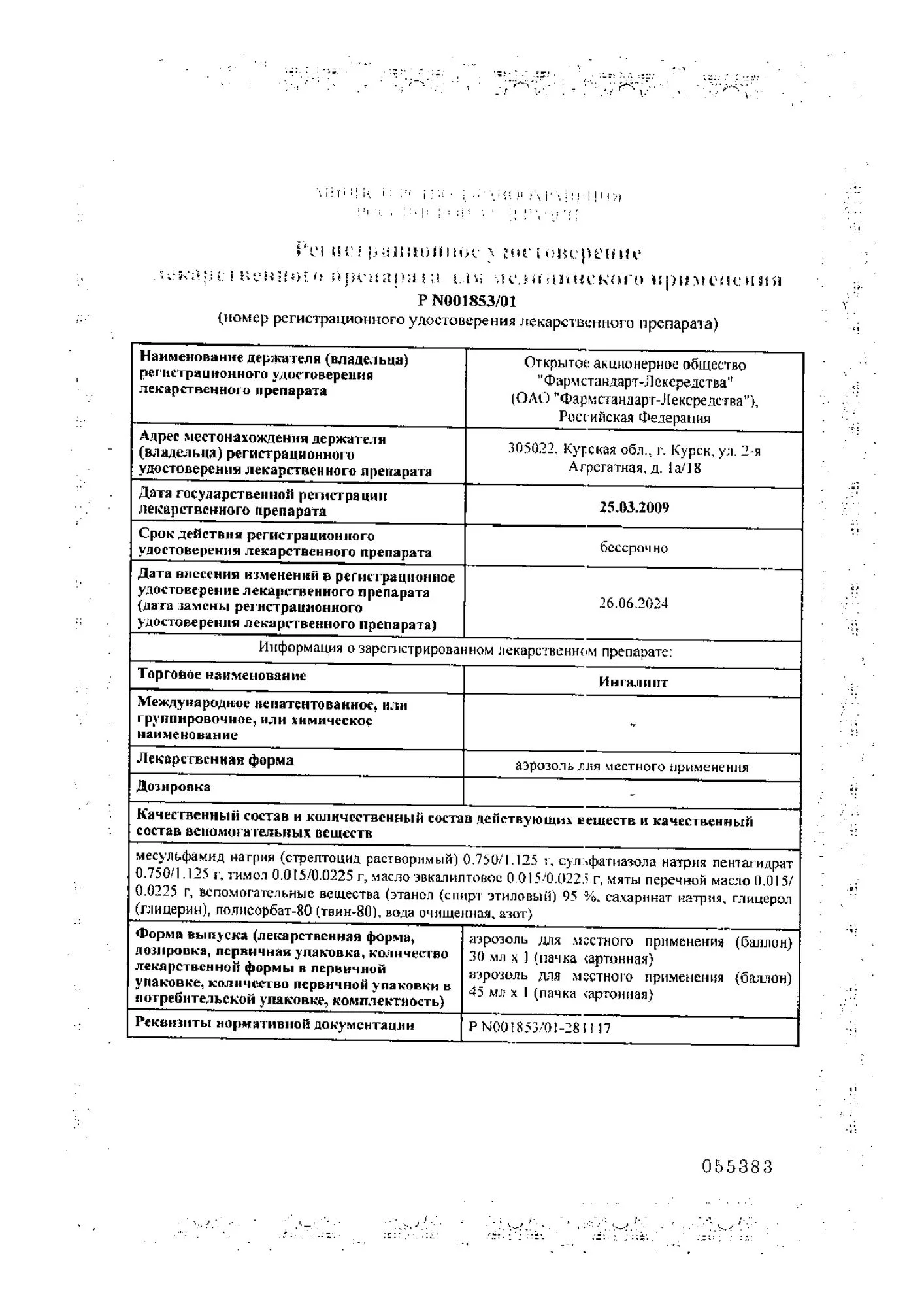 Перед применением Ингалипт, аэрозоль для местн примен 30мл обязательно проконсультируйтесь с Вашим лечащим врачом.