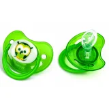 Соска пустышки имеет анатомическую форму, которая не влияет на формирование неправильного прикуса у малыша и обеспечивает свободное движение языка во рту. Благодаря специальным отверстиям на корпусе пустышки, она хорошо вентилируется, тем самым не вызывает раздражения вокруг рта малыша. Пустышка предназначена для детей от 6 до 18-ти месяцев.