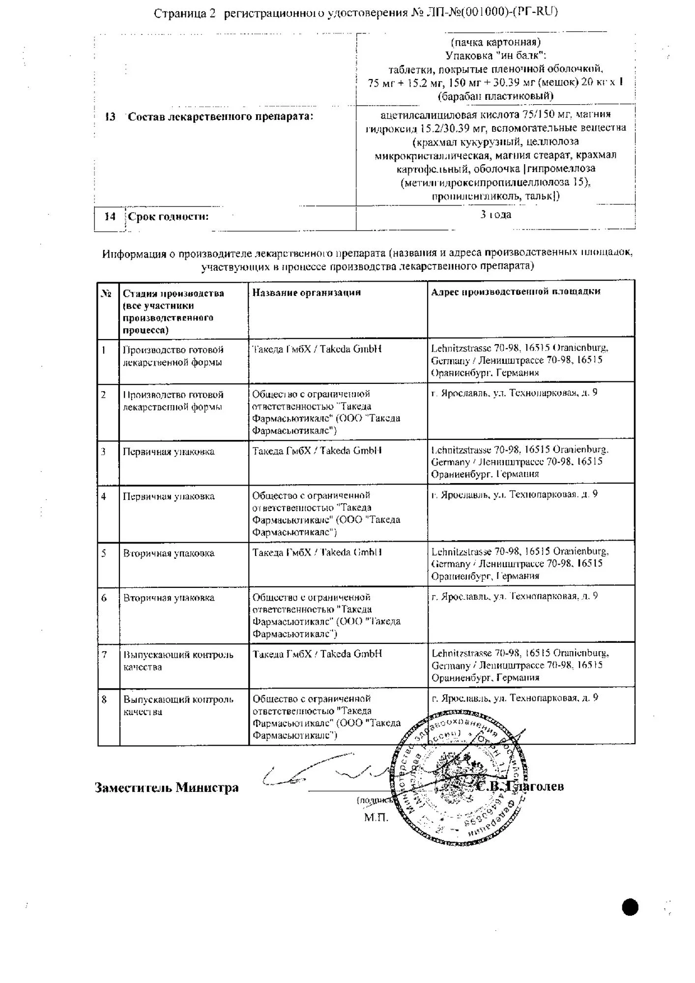 Действующее вещество: Ацетилсалициловая кислота+Магния гидрооксид