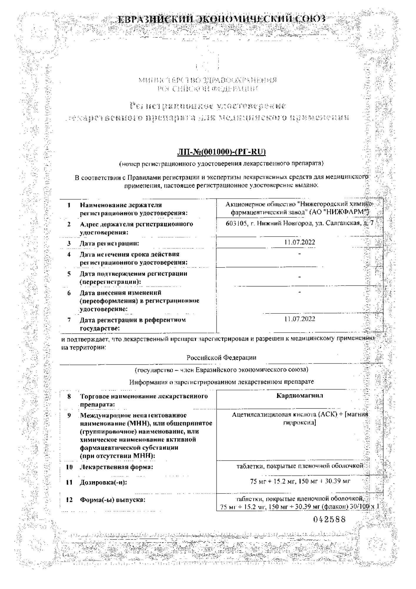 Кардиомагнил, таблетки ппо 75мг+15,2мг №30