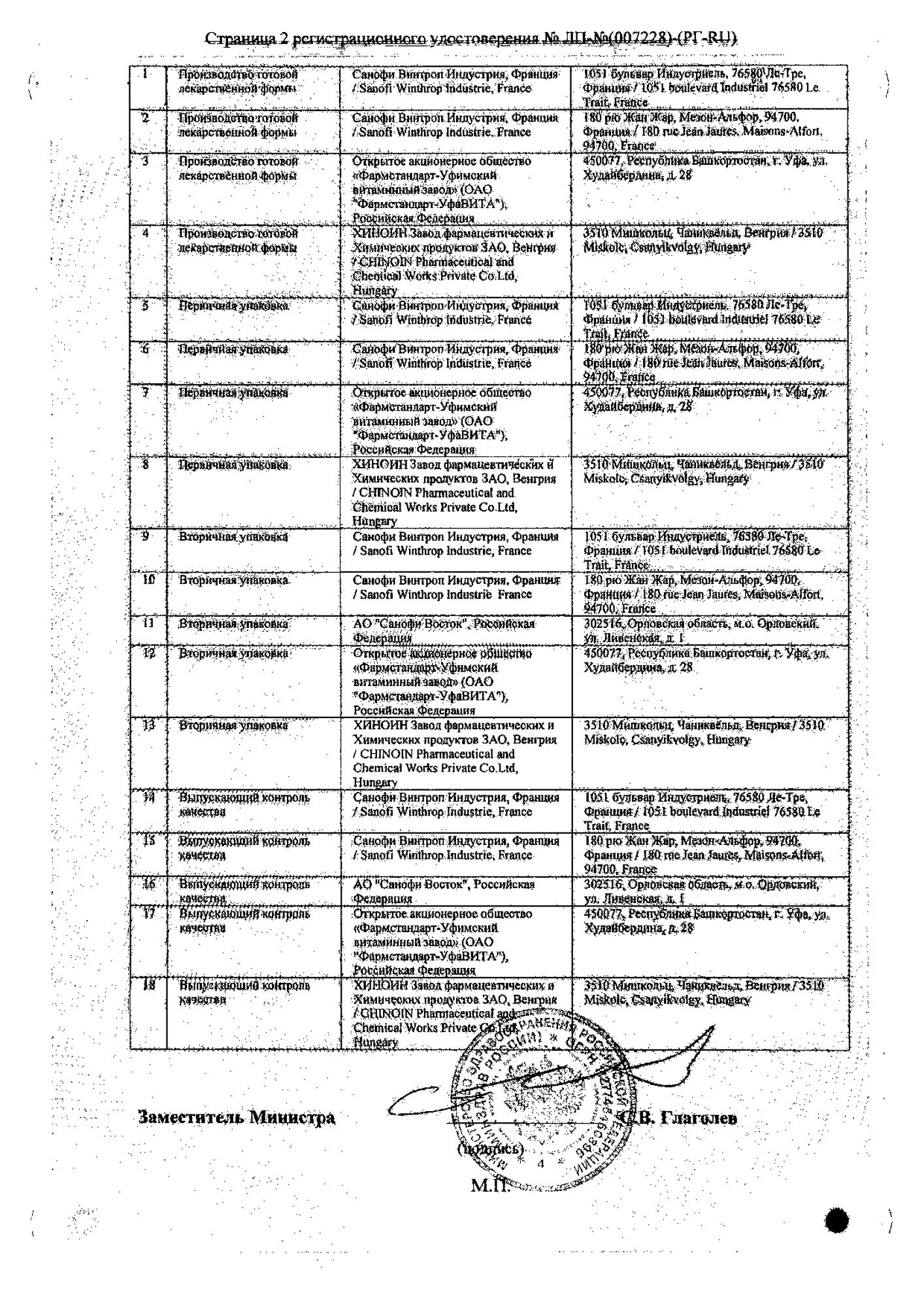Производитель: Фармстандарт-Уфавита ОАО/Санофи Винтроп