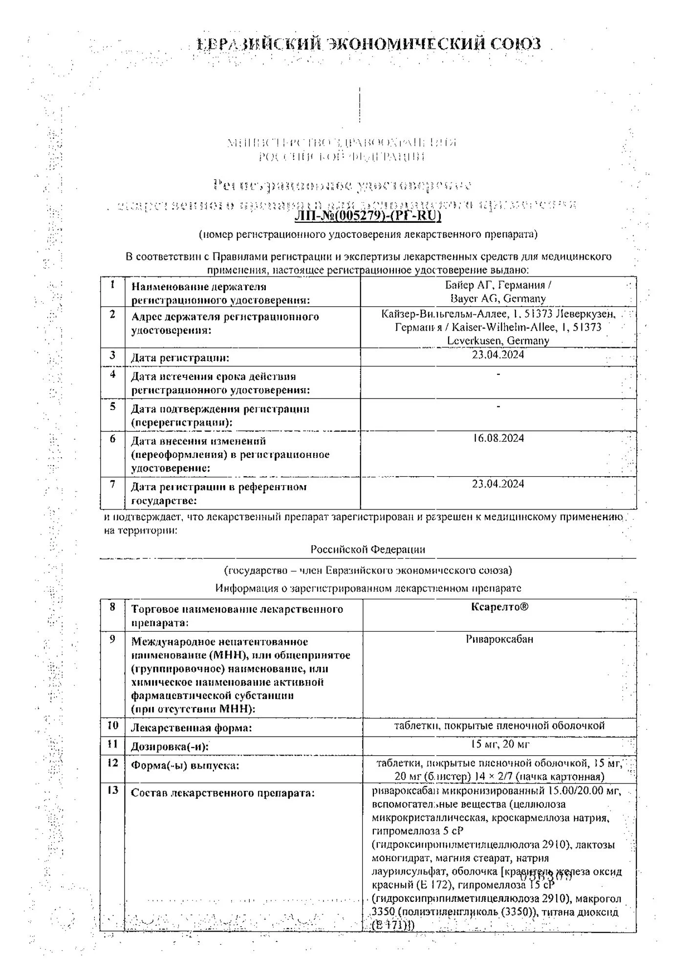 Перед применением Ксарелто, таблетки ппо 15мг №28 обязательно проконсультируйтесь с Вашим лечащим врачом.