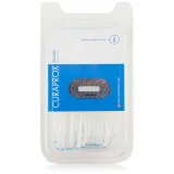 Набор Flosspic Curaprox DF 967 включает в себя 30 шт. шелковой межзубной нити с пластиковым держателем, на конце которого находится зубочистка.