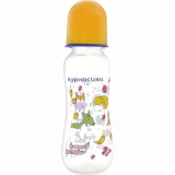 Бутылочка «Курносики» приталенной формы, две силиконовые соски в наборе - новые, яркие, современные и забавные дизайны. Бутылочка комплектуется силиконовыми сосками с антивакуумным клапаном, который снижает вероятность заглатывания малышом воздуха при сосании. Величина отверстия соски обеспечивает медленный поток, оптимальный для негустого питания: молока и молочных смесей, чая, воды. Для удобства использования бутылочка имеет рельефную мерную шкалу, деления которой строго соответствуют указанному объему.