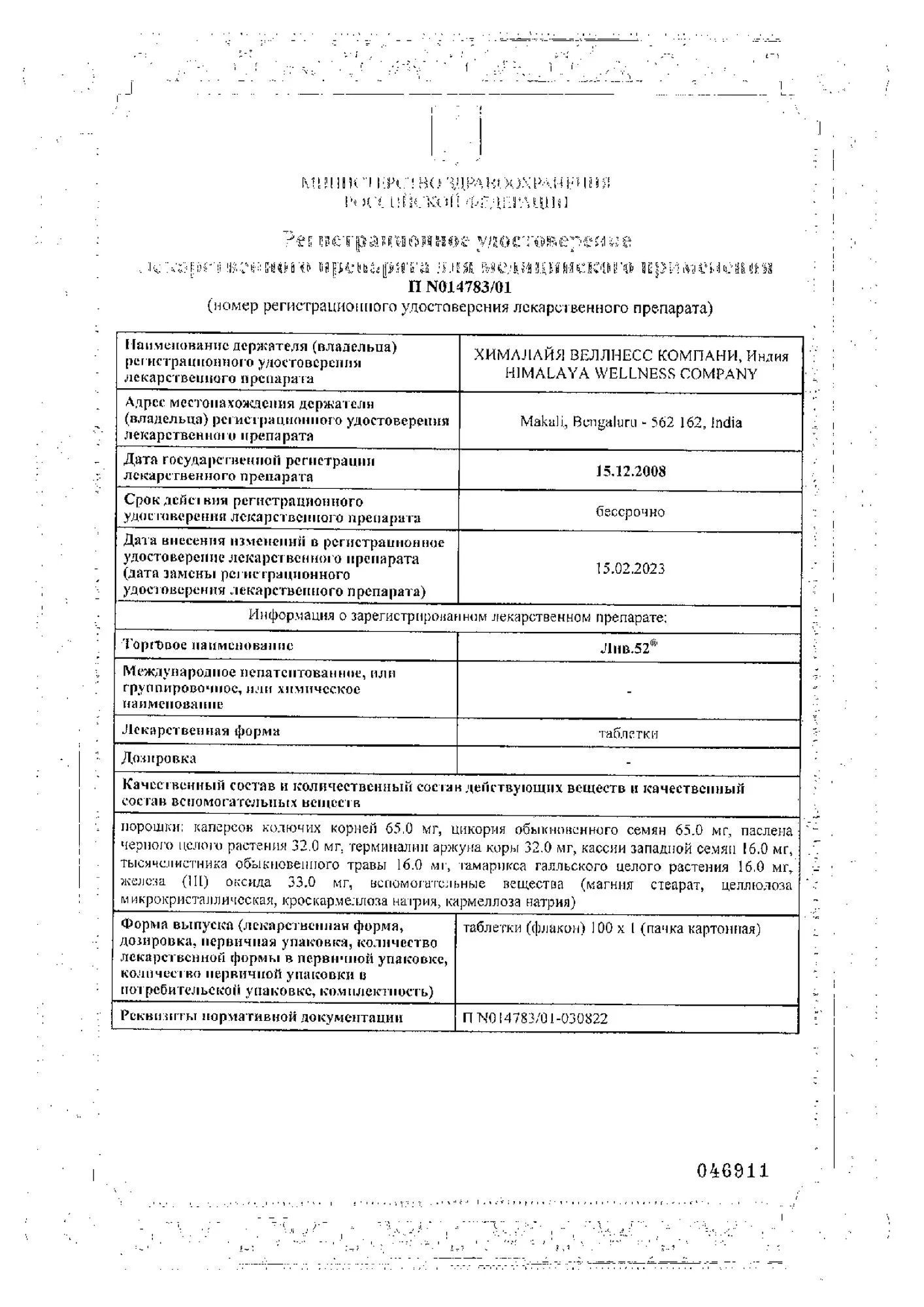 Терапевтический эффект Лив. 52 обусловлен совокупным действием его компонентов, поэтому проведение кинетических наблюдений не представляется возможным.