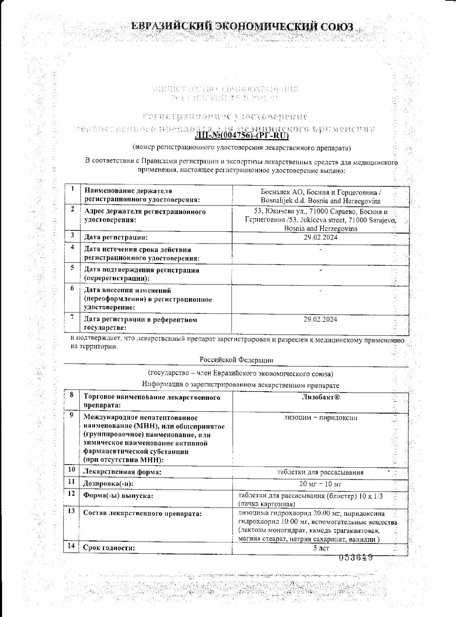 При совместном применении Лизобакт® усиливает действие антибиотиков, в т.ч. пенициллина, хлорамфеникола, нитрофурантоина, усиливает действие диуретиков, ослабляет активность леводопы.