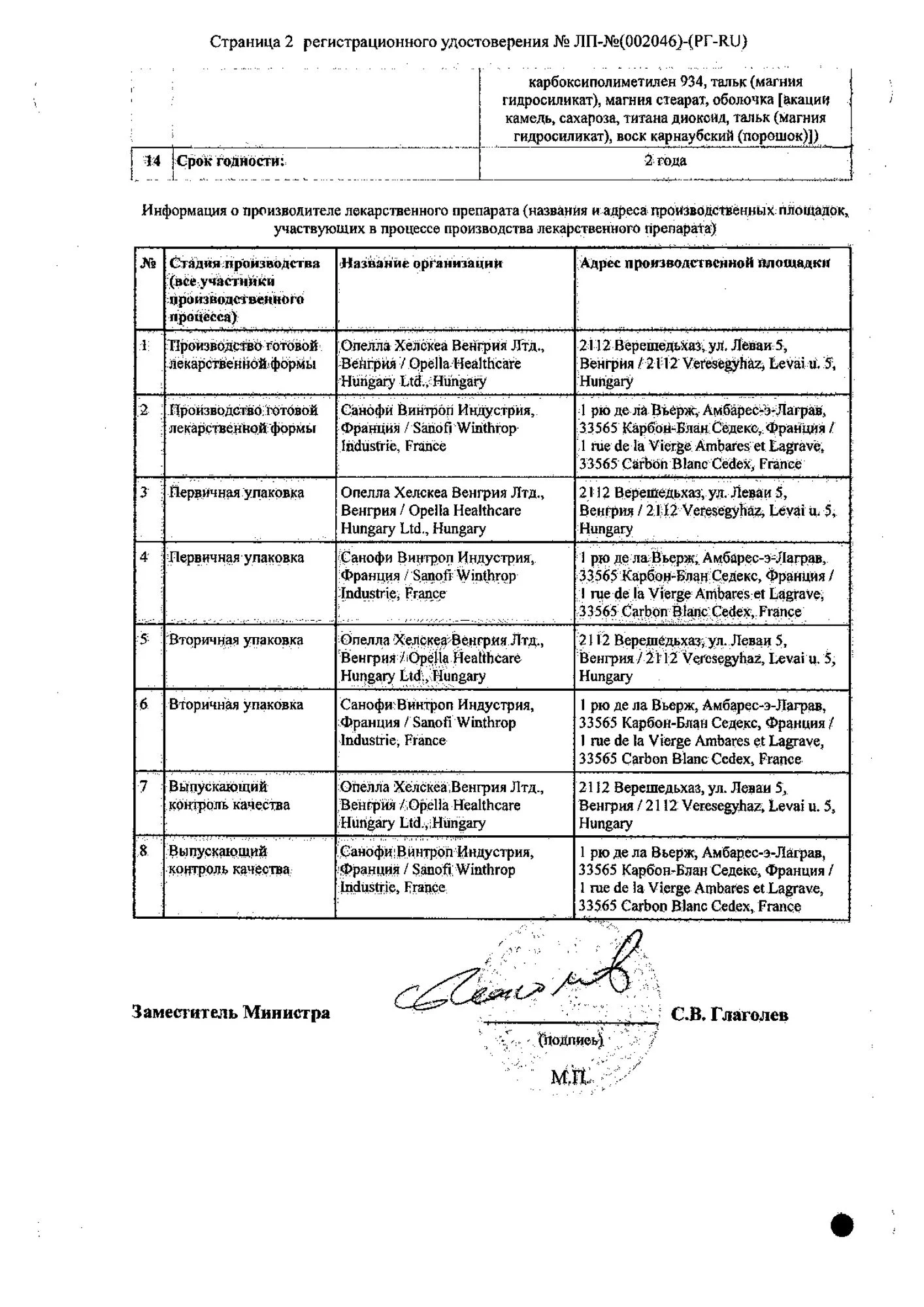Производитель: Санофи Винтроп Индустрия/Опелла Хелекеа Венгрия