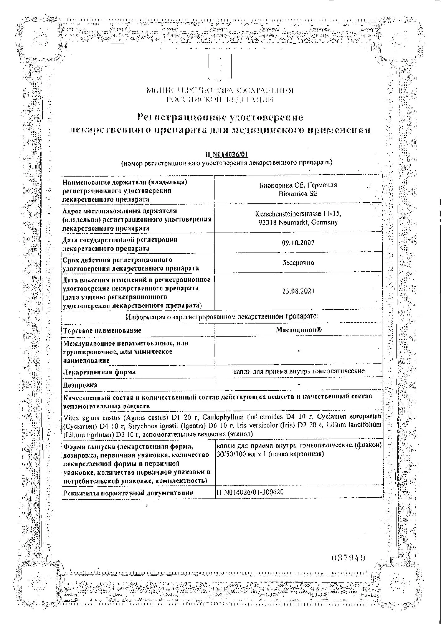 Мастодинон, капли для внутр гомеопат фл-кап 100мл