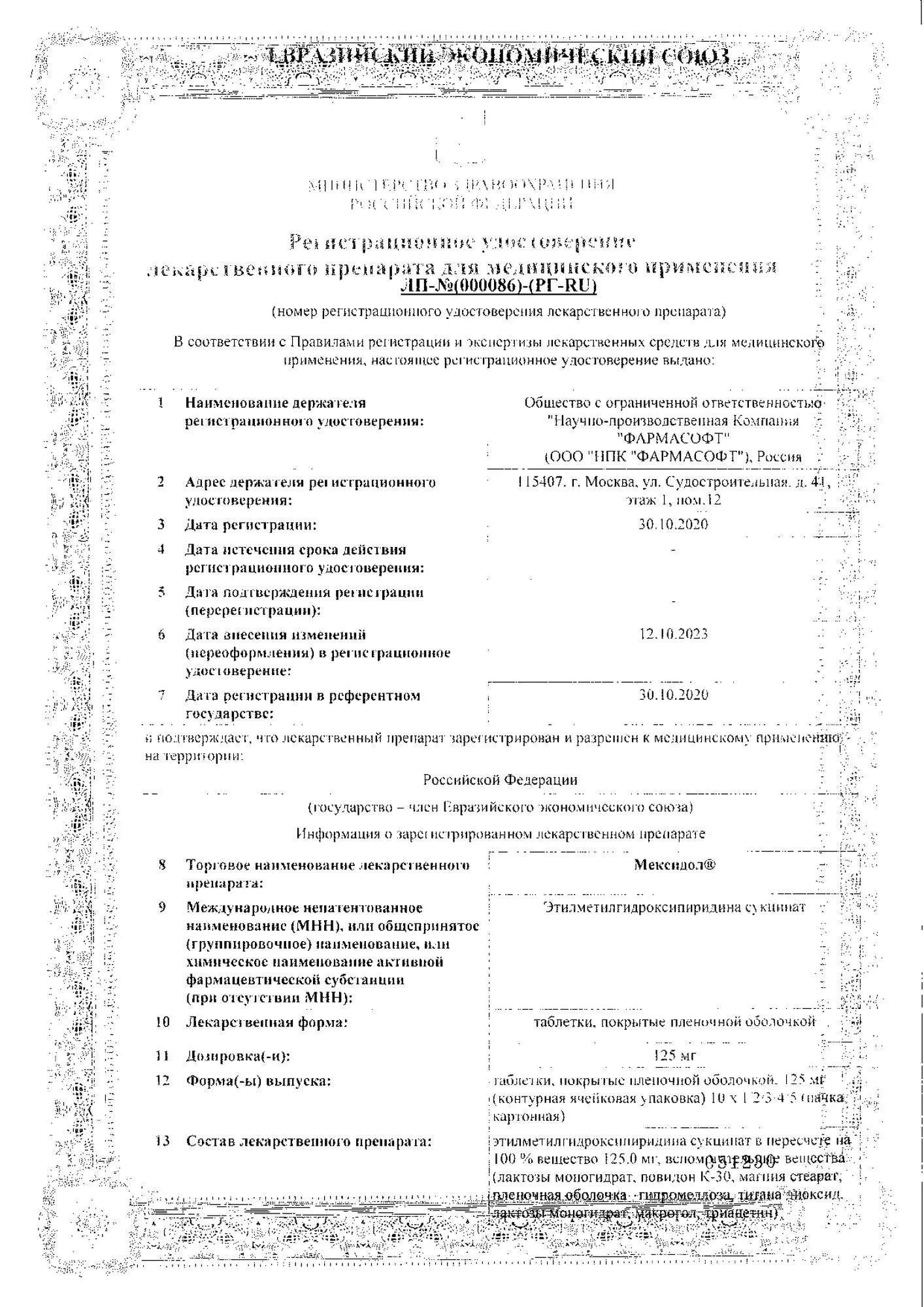 Перед применением Мексидол, таблетки ппо 125мг №30 обязательно проконсультируйтесь с Вашим лечащим врачом.