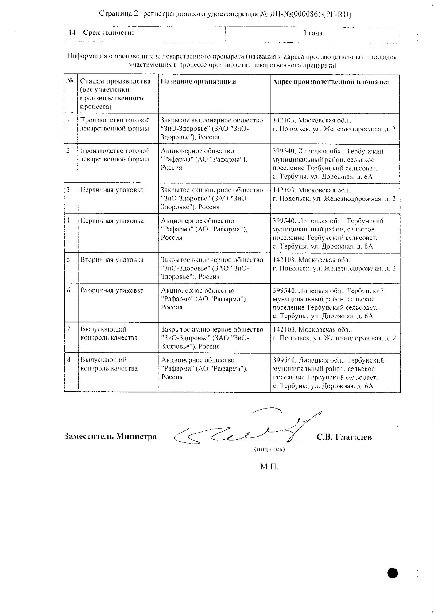 Производитель: ЗиО-Здоровье ЗАО/Рафарма АО