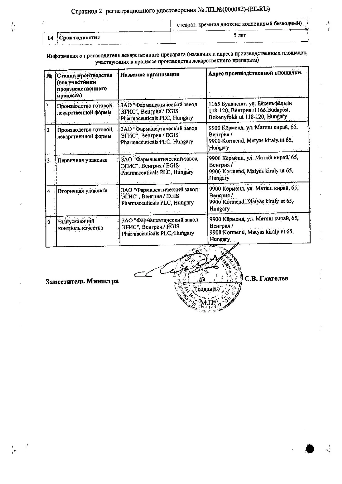 Производитель: ЭГИС Фармацевтический завод ЗАО