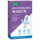 Мультифлора макси – синбиотик нового поколения для ускоренного восстановления микрофлоры кишечника. Это синергия 8 штаммов (5 видов лактобактерий и 3 вида бифидобактерий) и 1 пребиотика (фруктоолигосахариды).