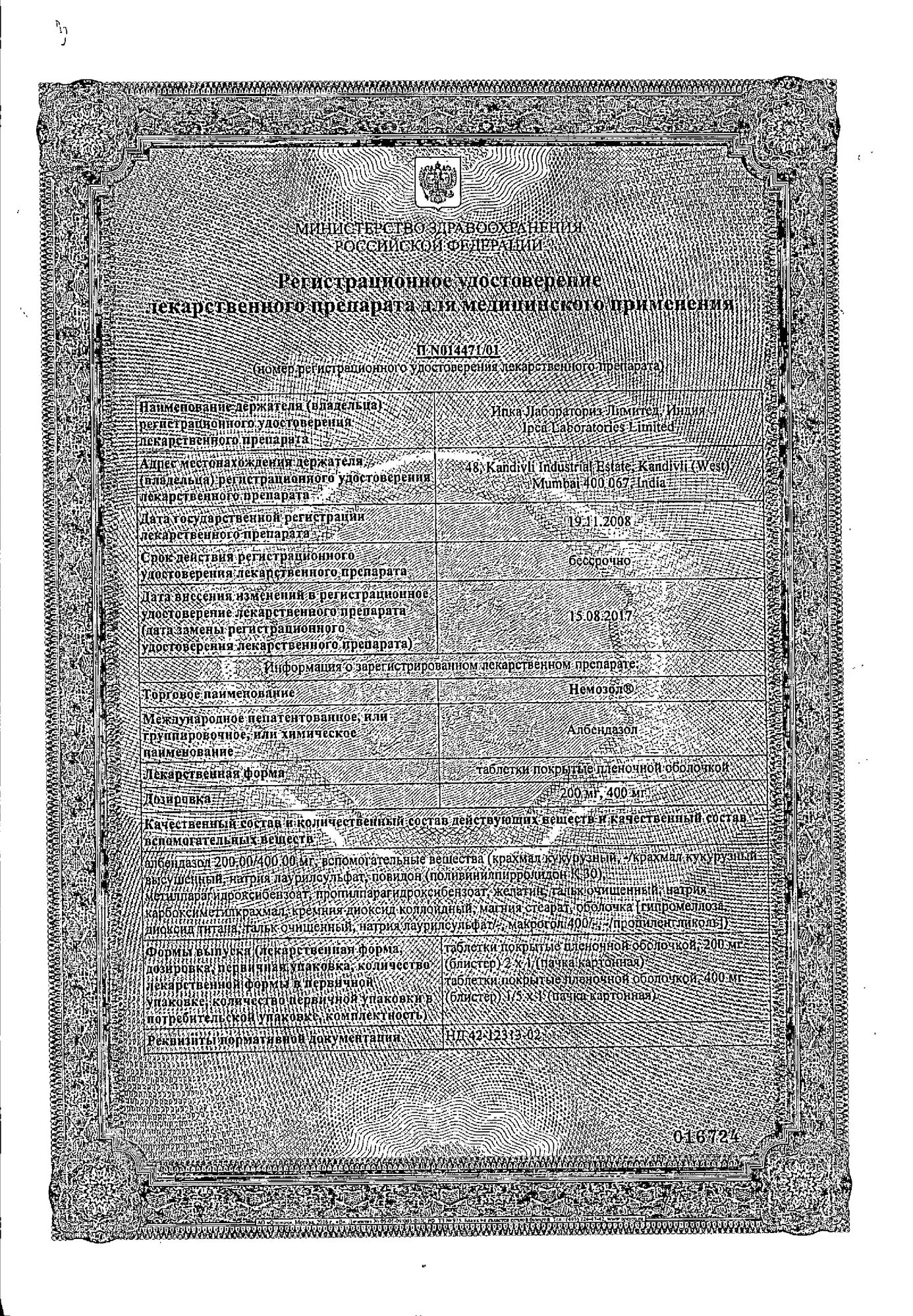 Немозол, таблетки ппо 400мг №1